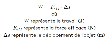 Finalement, tu pourras utiliser la formule permettant de calculer le travail exercé sur un objet, soit :