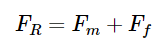 La force résultante en x est la somme des forces en x appliquées à l'objet. Dans notre situation, on a deux forces, la force de frottement et la force motrice :