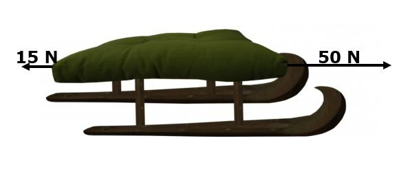 Ici, on a une force de frottement de 15 N, et une force motrice de 50 N.