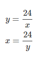 $$y =\frac{24}{x}$$