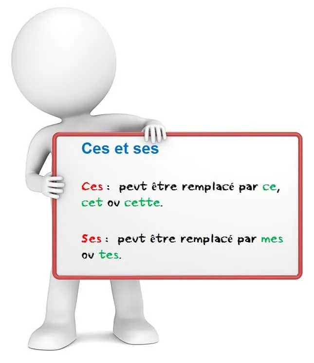 Salut! "Ces" peut être remplacer par la et "ses" par mais ou tes. J'espère que sela t'a aider