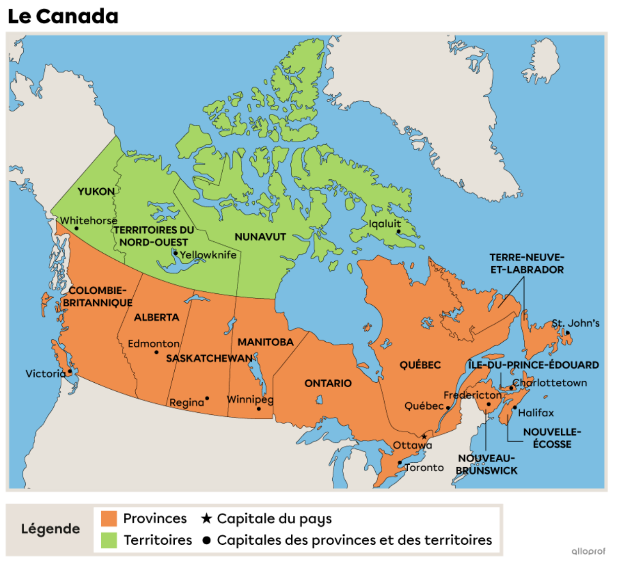 2) Au Canada, nous avons 10 provinces et 3 territoires