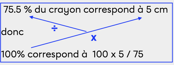 100% correspond à 100 x 5 / 75 = 6.6... cm