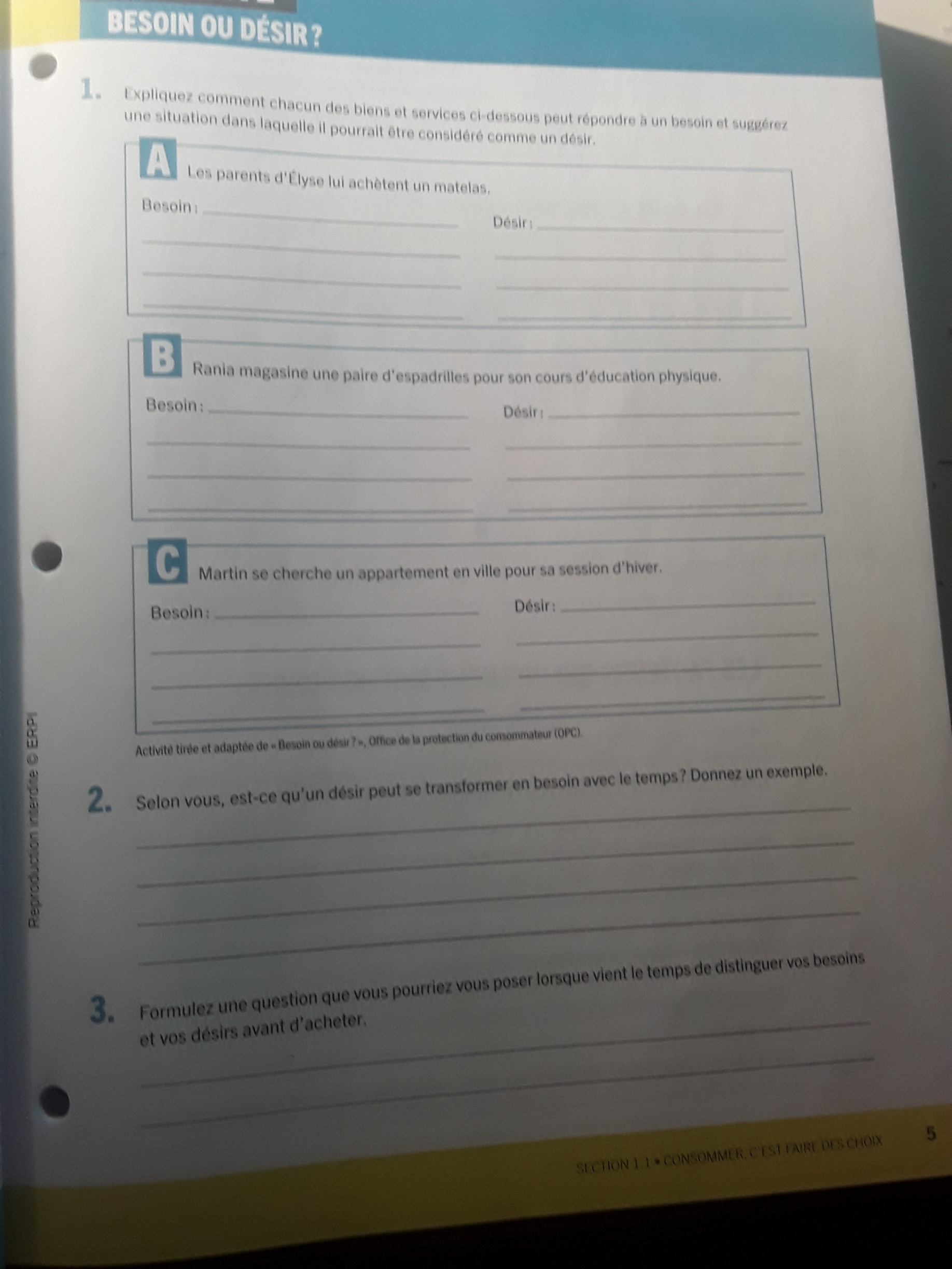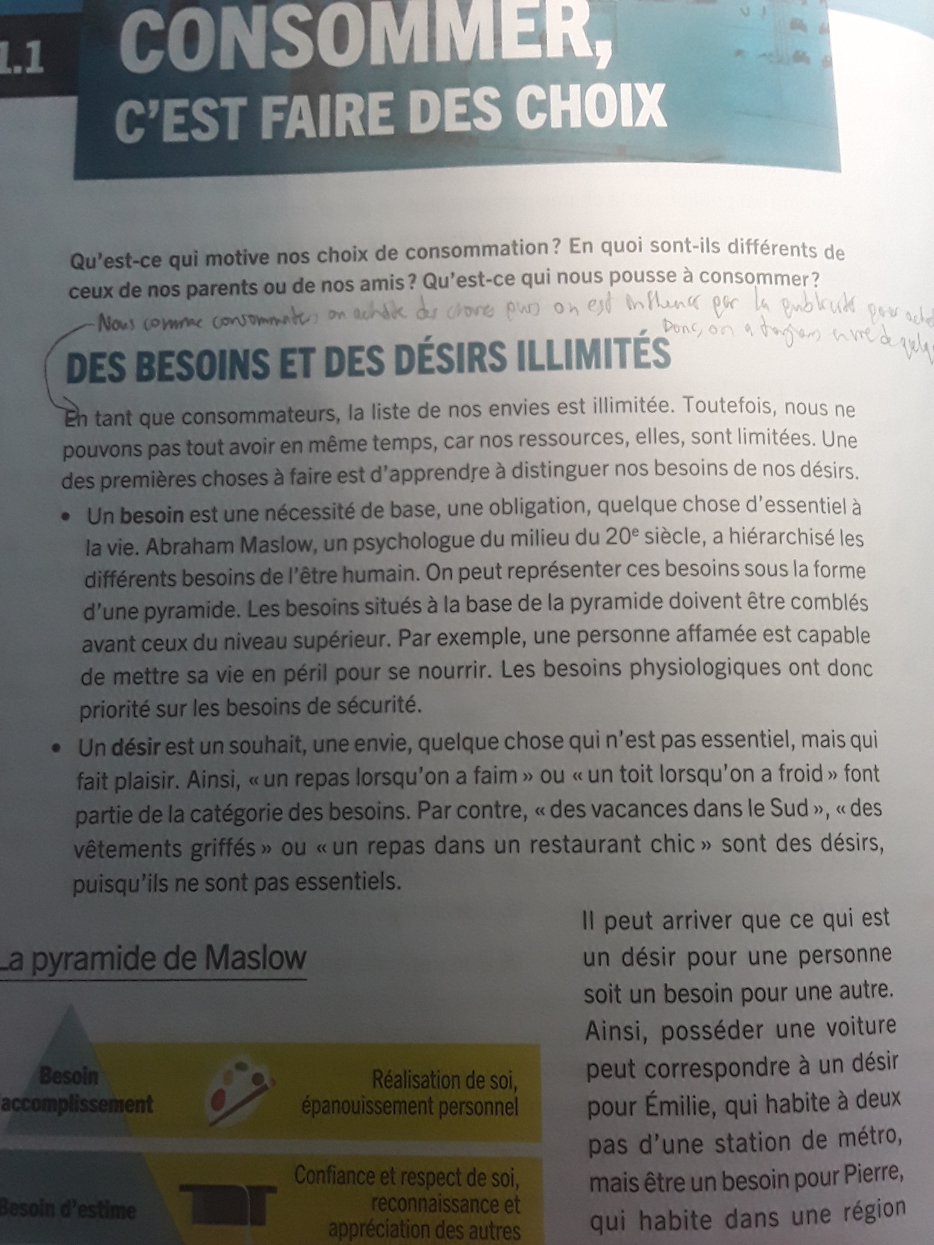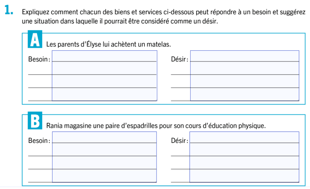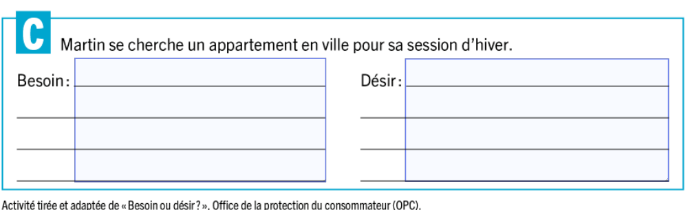 Secondaire 5 • 1mJe n'ai pas compris comment reconnaître un besoin et un désir.