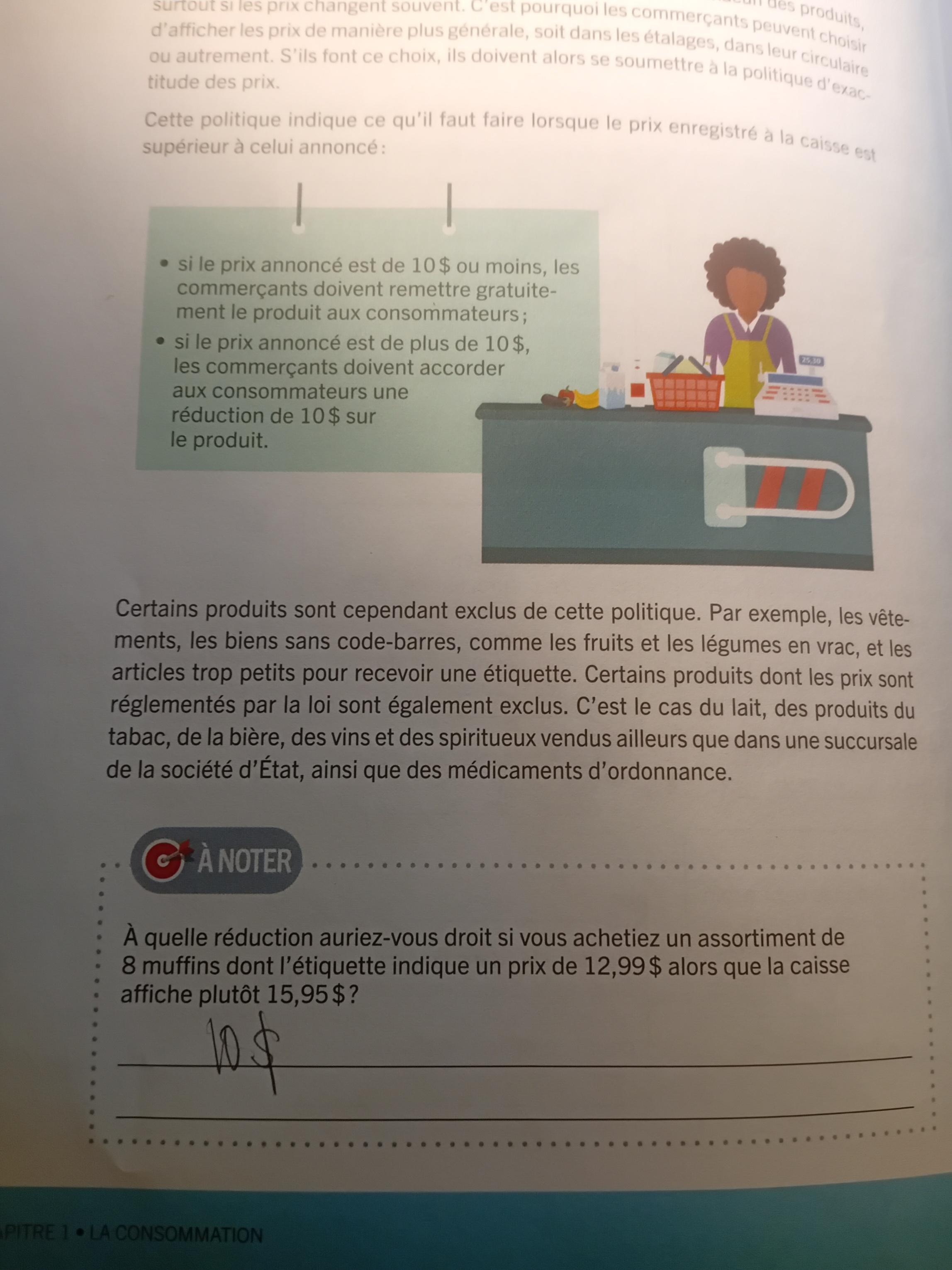 Par hasard j'ai eu la bonne réponse. C'est 10 dollars la bonne réponse mais comment on a reçu 10 dollars. Pouvez-vous me dire comment on l'a trouvé. Je ne sais pas par quel calcul on a fait pour trouver 10 dollars?