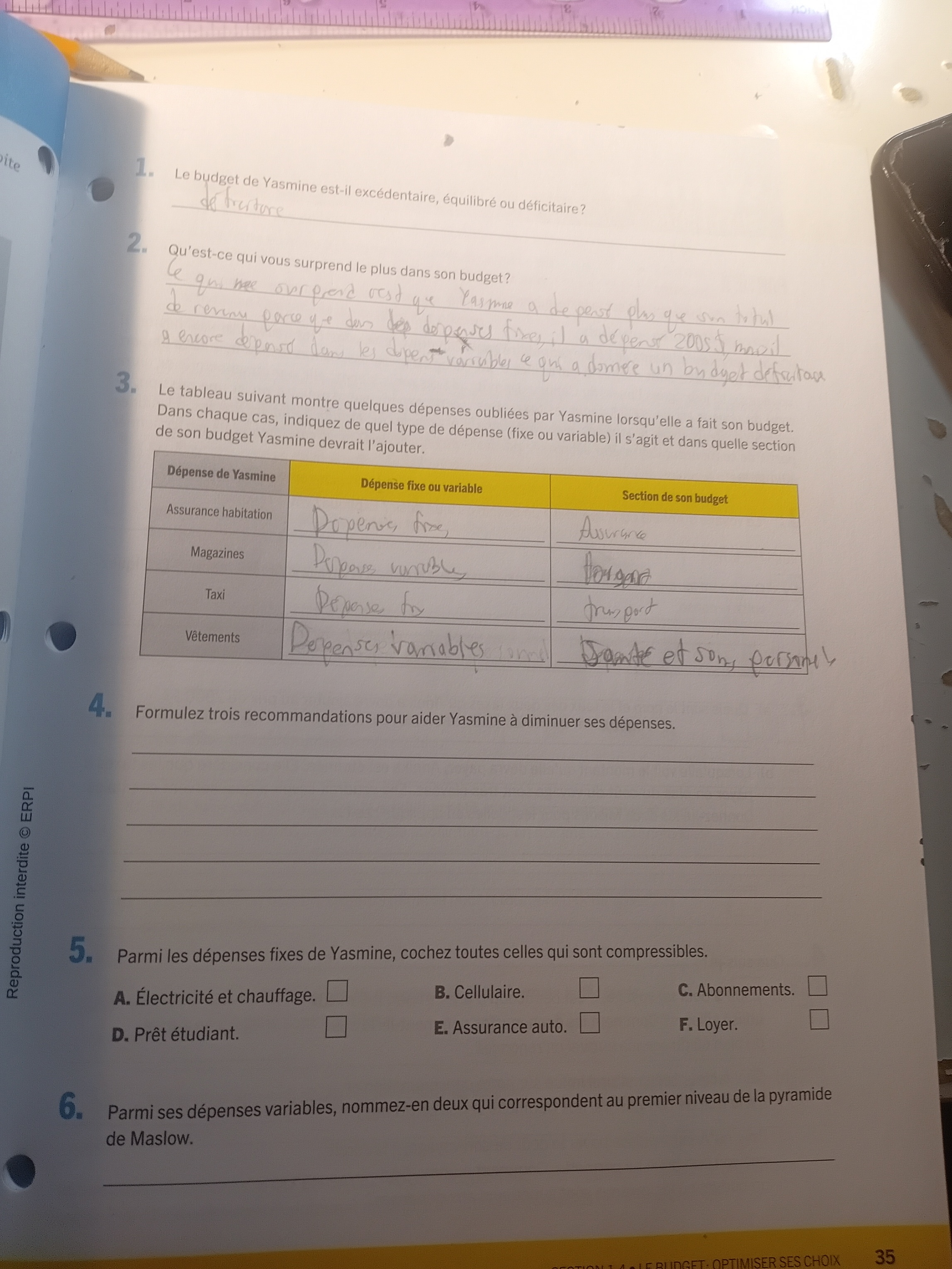 Secondaire 5 • 6mBonsoir,pouvez vous m'expliquer comment faire le budget de cette situation et m'expliquer c'est quoi les types de dépenses ,svp