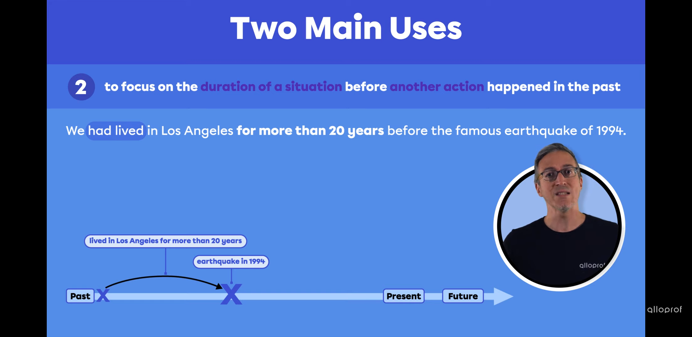 Secondaire 4 • 1aBonjour je me sens complètement incompris. Ce que je ne compremd pas est le past perfect dans cette vidéo ça dit duration mais quel duration ?