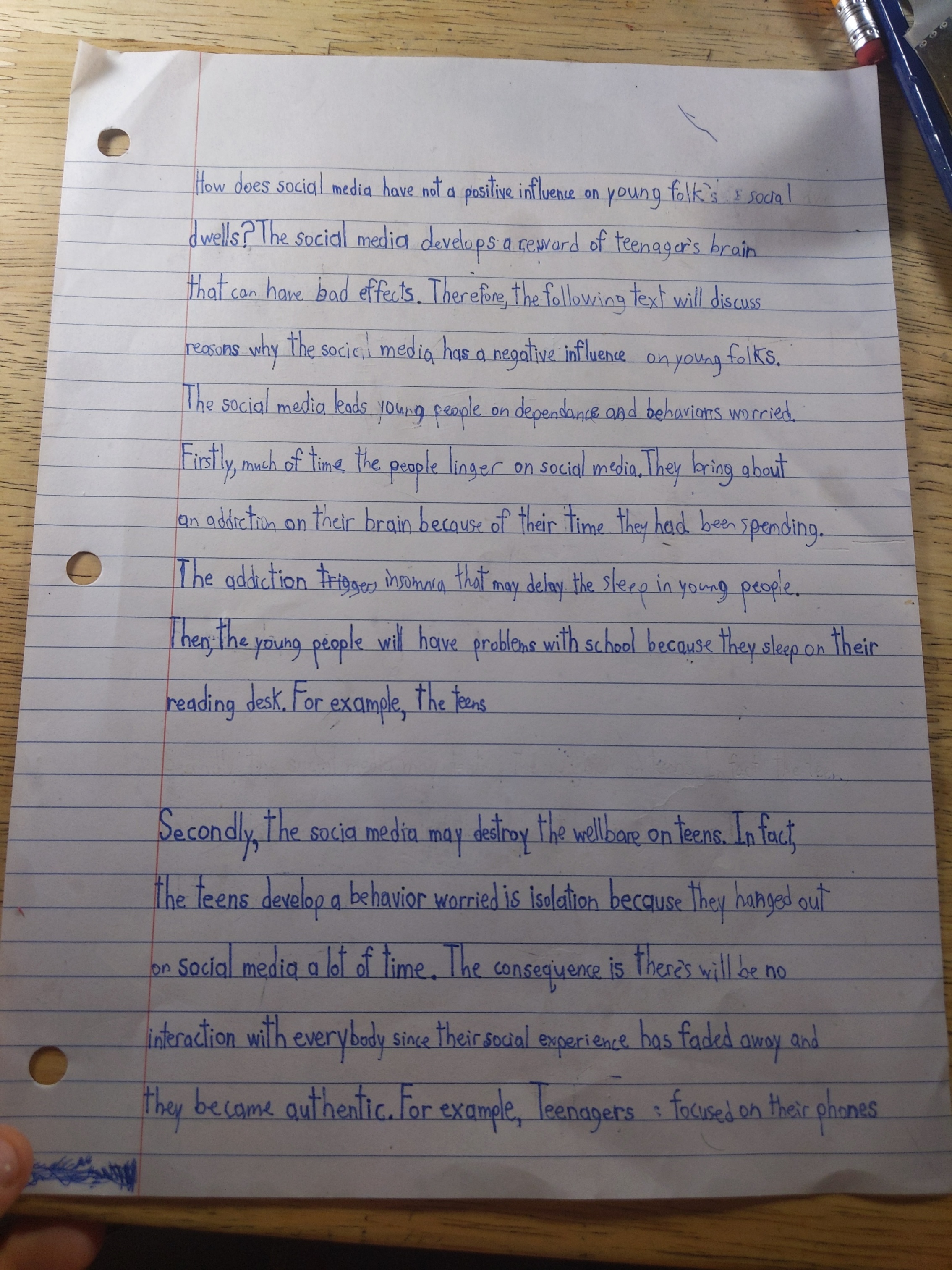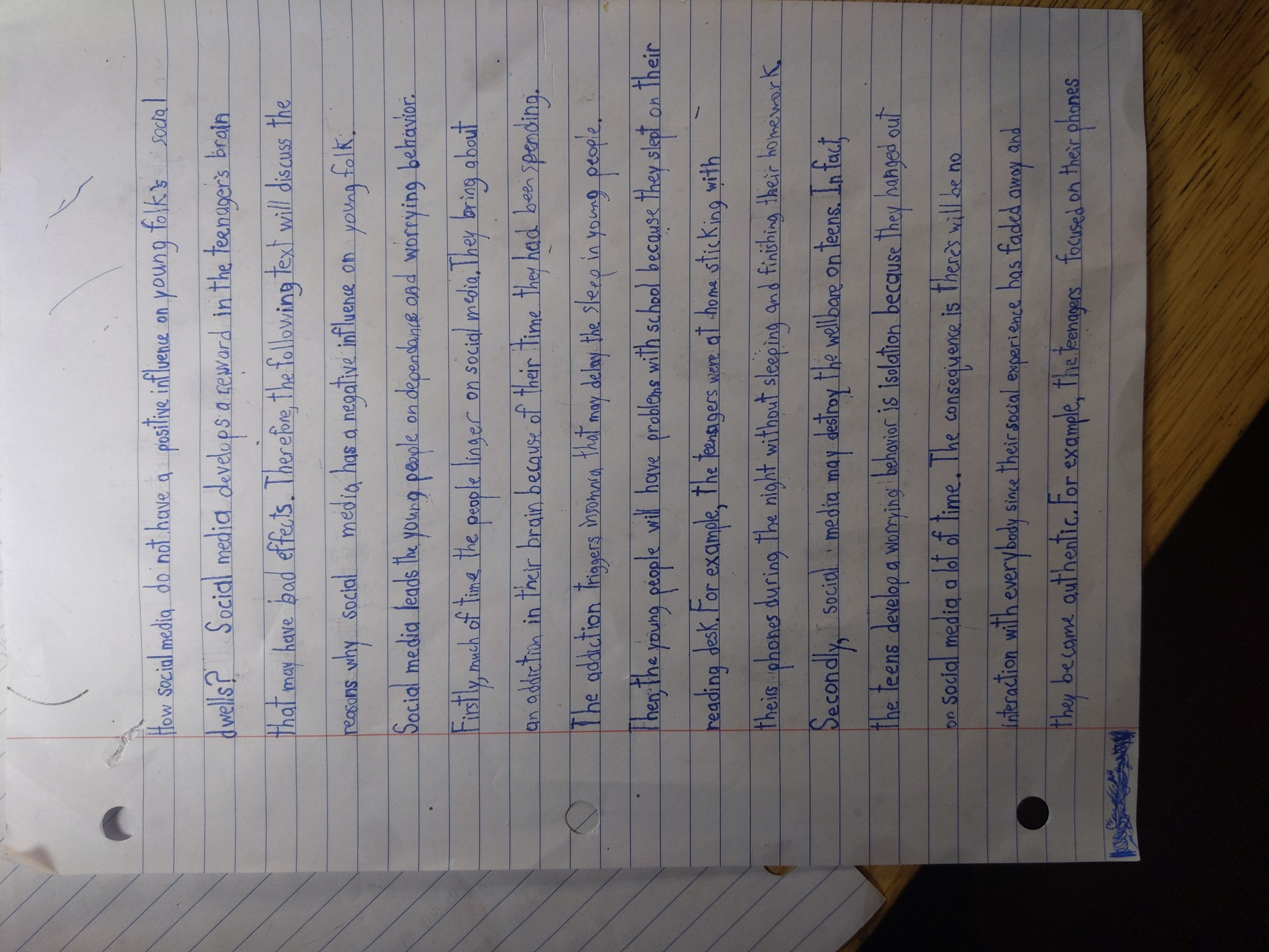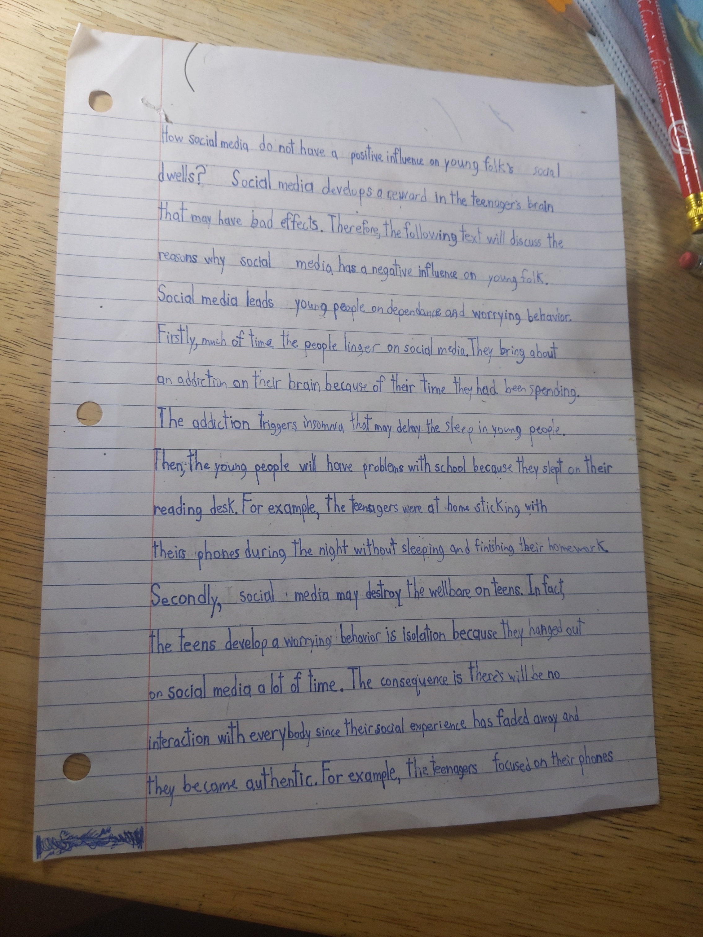 Secondaire 3 • 1aBonjour alloprof je fais la question que vous m'avez donné Do social have a negative influence on young people's social live? Je cherche des exemples car je sais que je dois faire un exemple pour appuyer mais je ne trouve pas pouvez-vous me m'aider j'ai cherché je n'ai rien trouvé sur les exemples de cas merci?