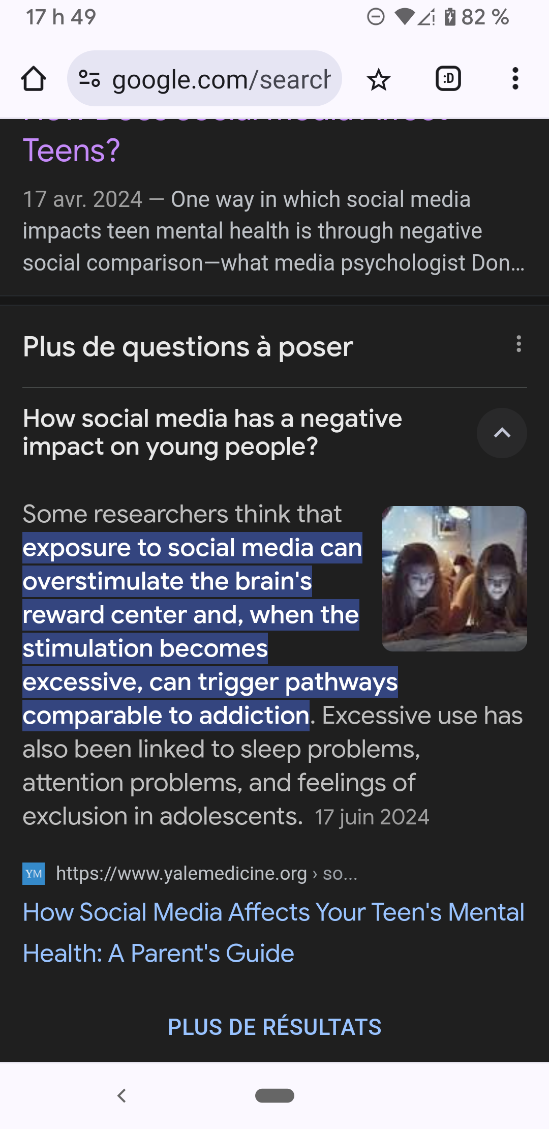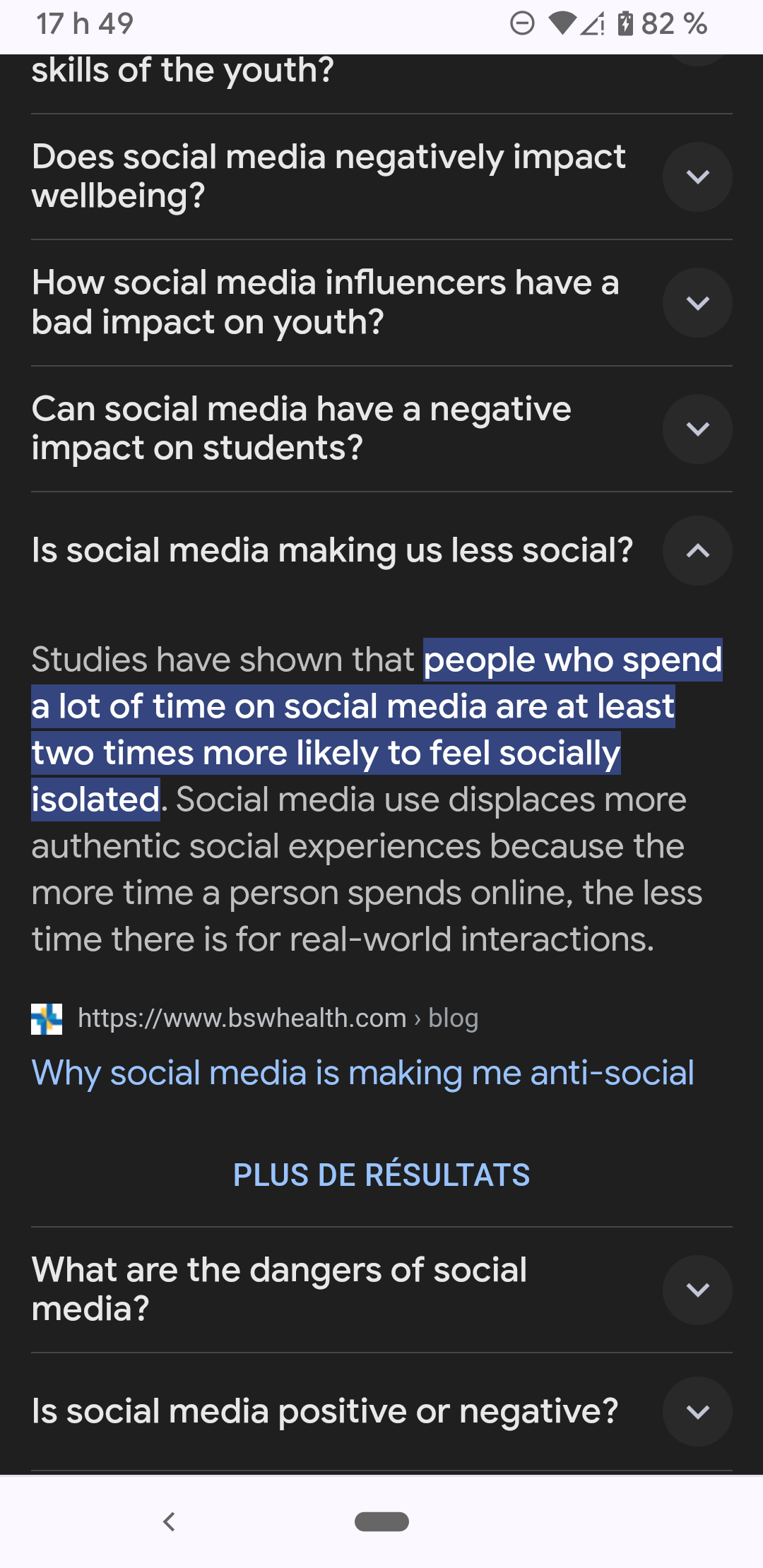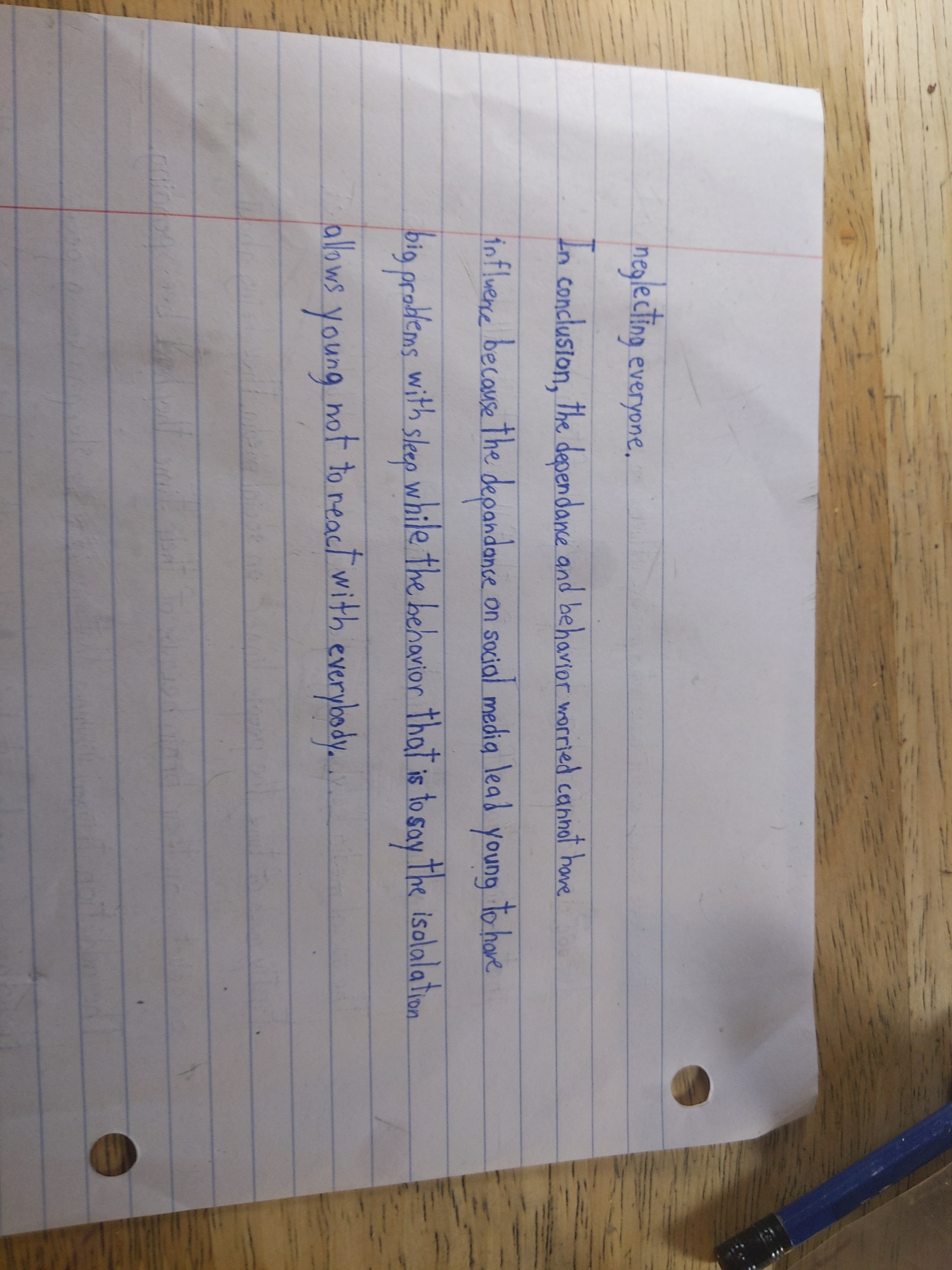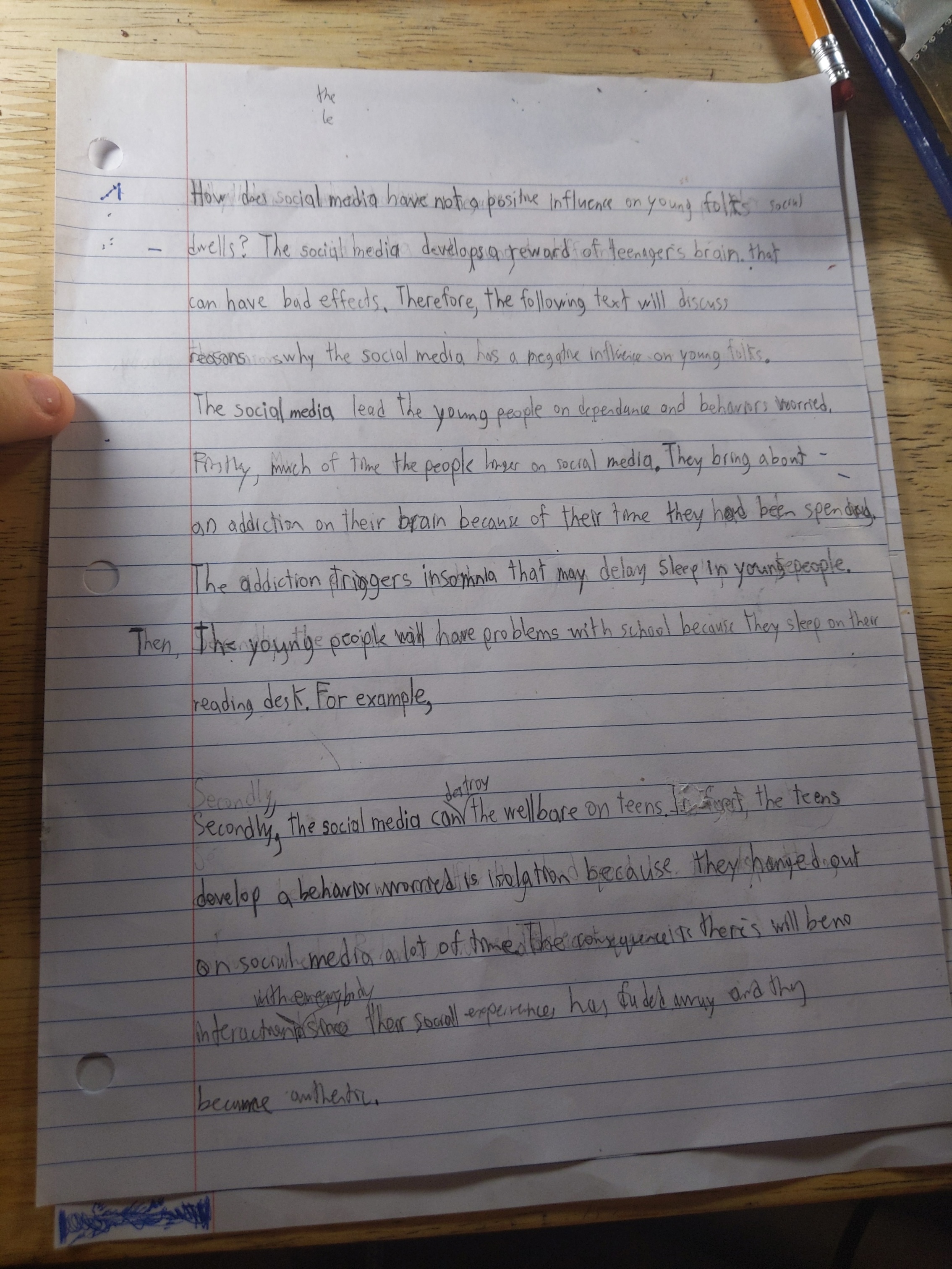 Secondaire 3 • 1aBonjour alloprof je fais la question que vous m'avez donné Do social have a negative influence on young people's social live? Je cherche des exemples car je sais que je dois faire un exemple pour appuyer mais je ne trouve pas pouvez-vous me m'aider j'ai cherché je n'ai rien trouvé sur les exemples de cas merci?