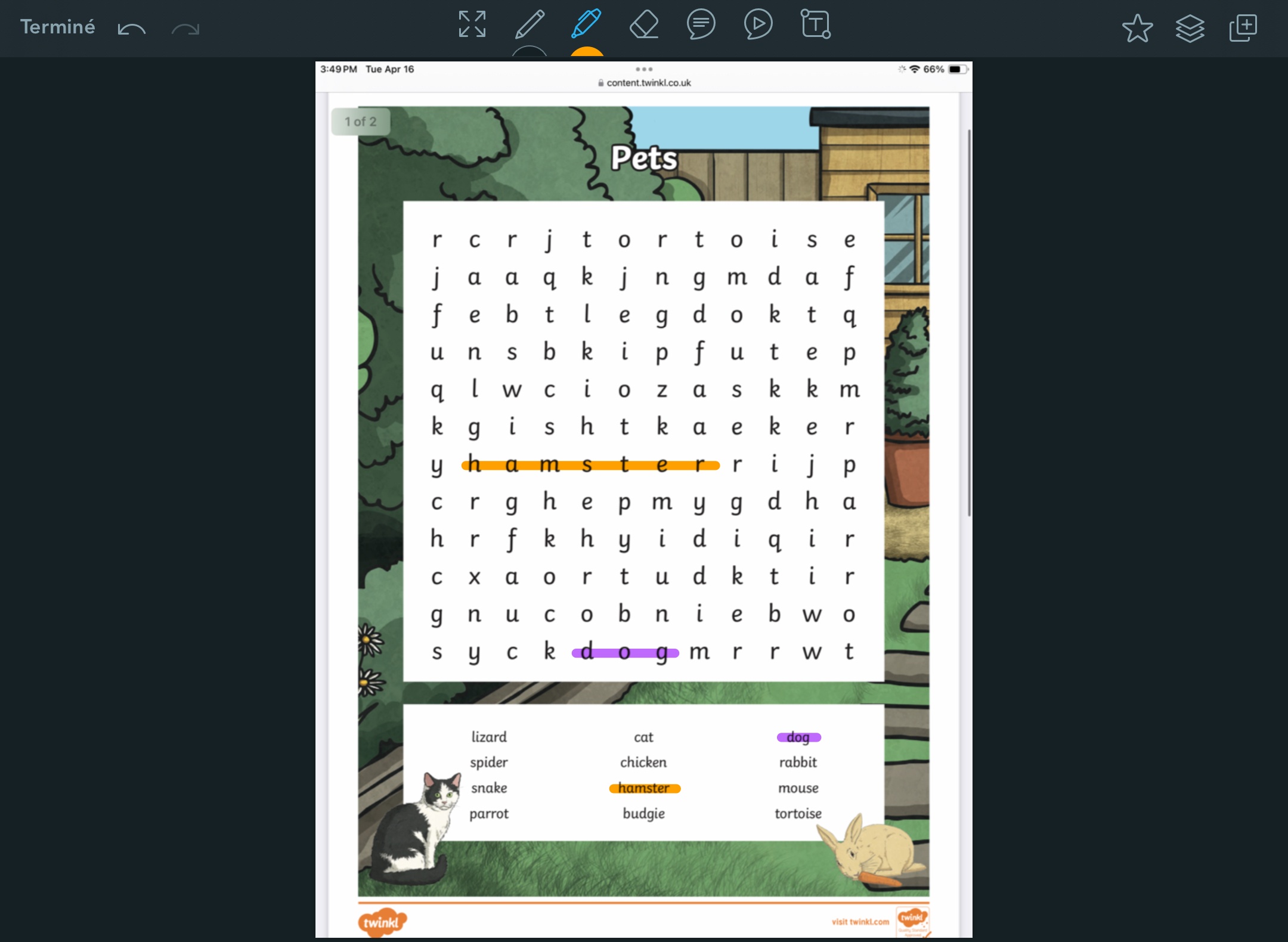 Primaire 6 • 1aHi, my teacher gave me this activity to finish for tomorrow.. I don't know if this is the kind of question we can ask there but is there any astuces to find more words more quickly?/Bonjour, mon enseignante nous a assigné cette activité à finir pour le lendemain . Je ne sais pas si on peut poser ce genre de questions ici mais avez vous des trucs pour trouver des mots plus rapidement?