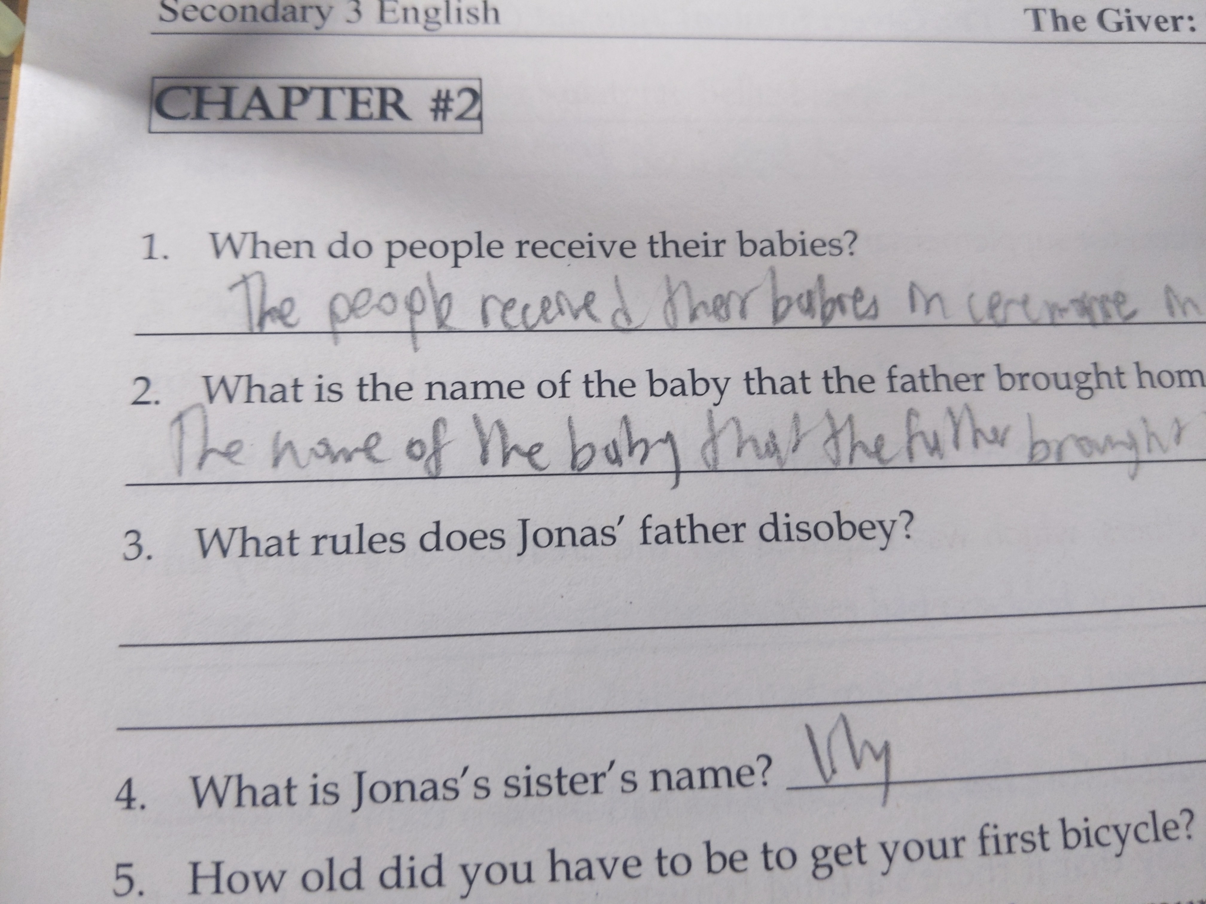 Secondaire 3 • 1aBonjour dansa question ça dit quelles règles le père de Jonas n'avait pas respecté danse livre ça dit règle mais je ne trouve pas quelles règles pouvez-vous m'aider à trouver j'ai lu plusieurs fois merci?