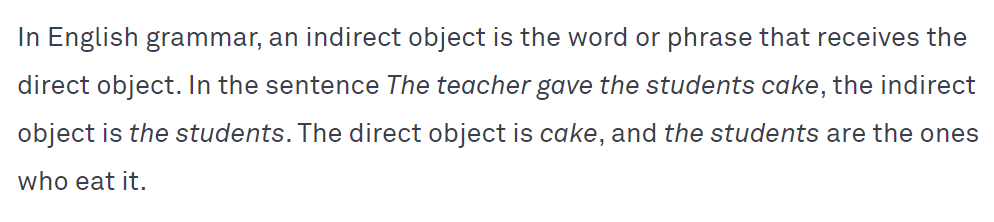 Secondaire 2 • 2aHello,In this definition (from Grammarly), they explain that an indirect object receives the action from the direct object.