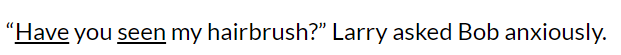 "Did you see my hairbrush?" Larry asked Bob anxiously.