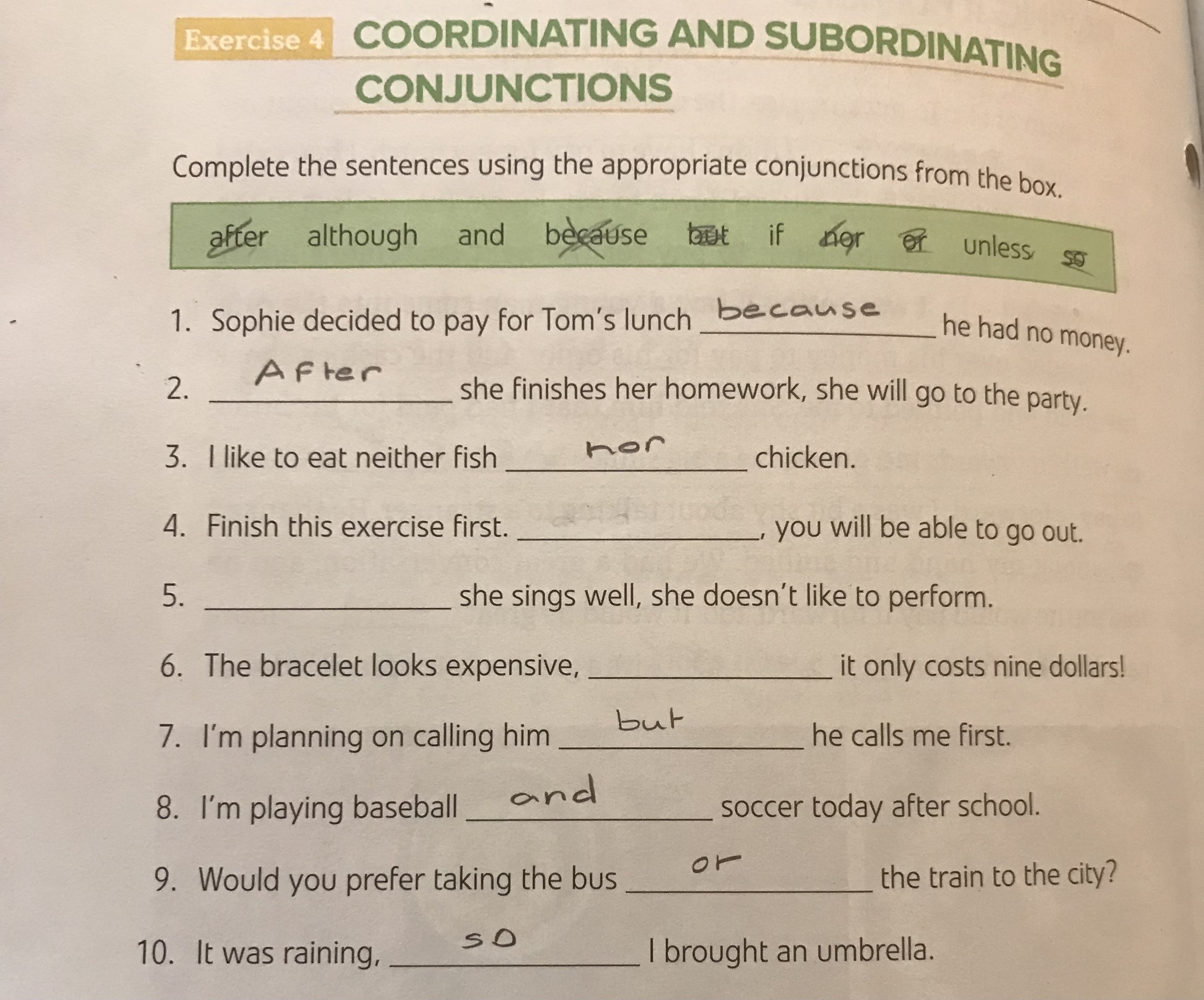 Secondaire 4 • 3aBonjour je ne sais pas quel conjonction utliliser dans les phrases 4-5-6