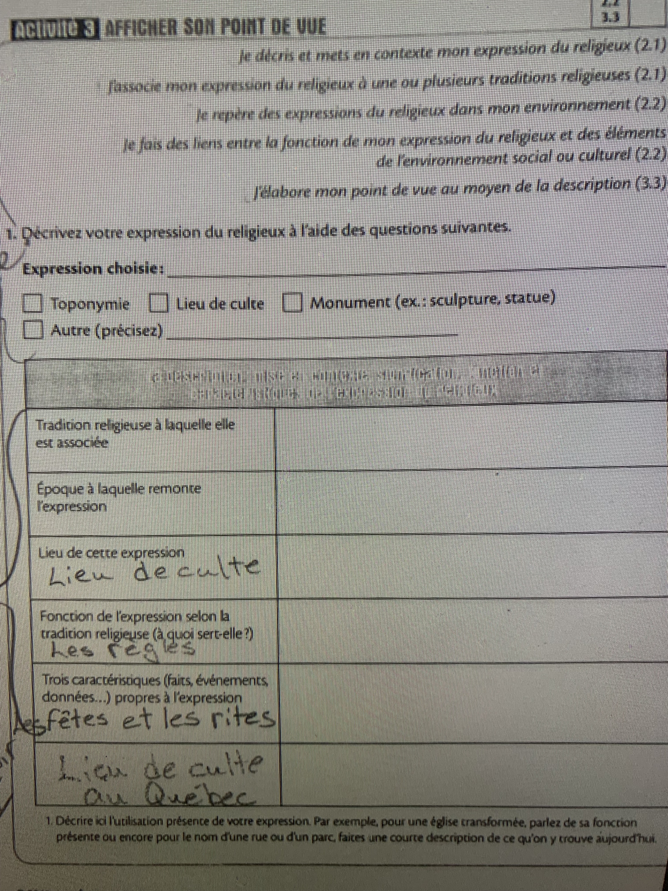 2.1 je décris et met en contexte mon expression religieuse ( ma religion)