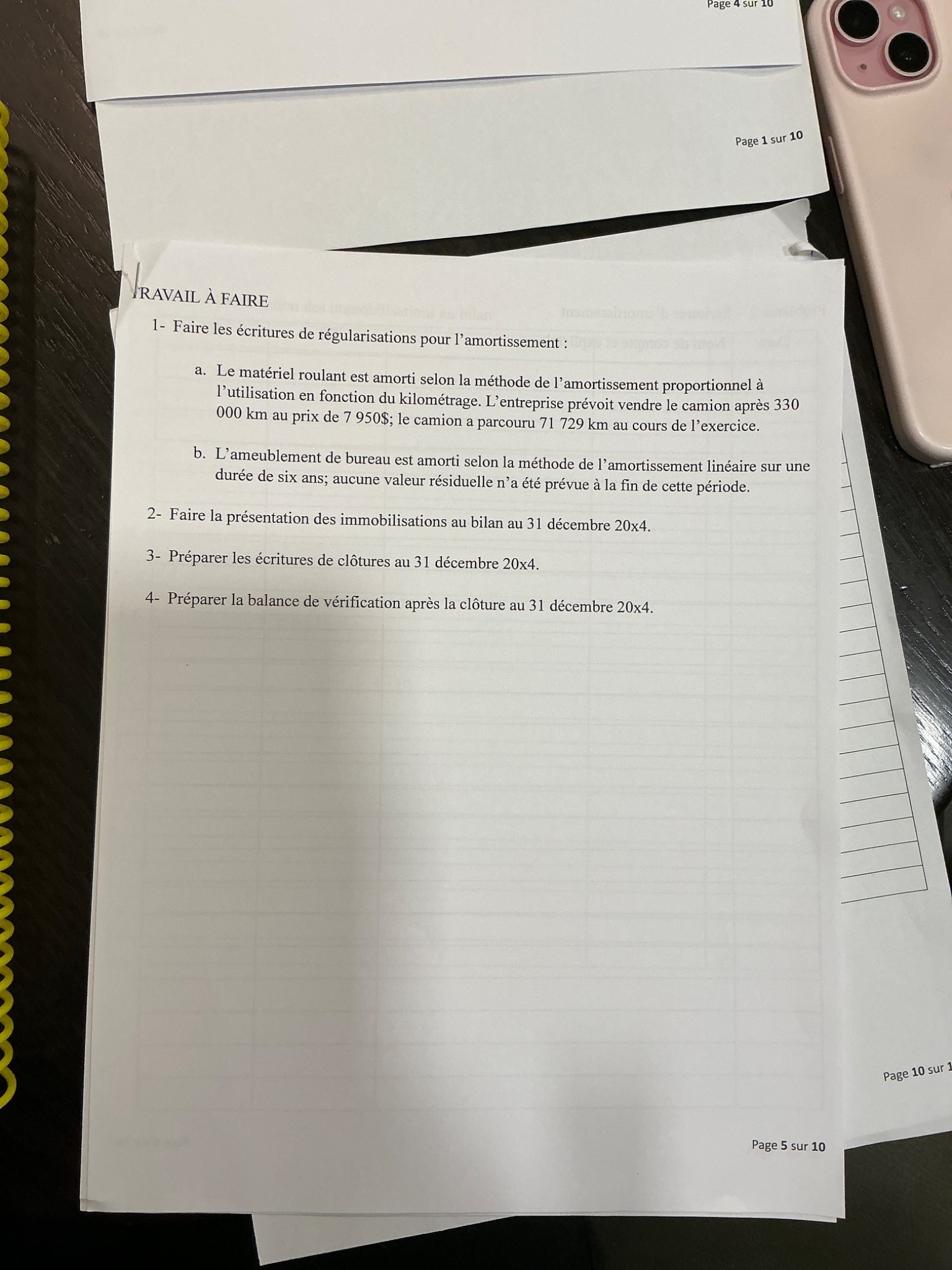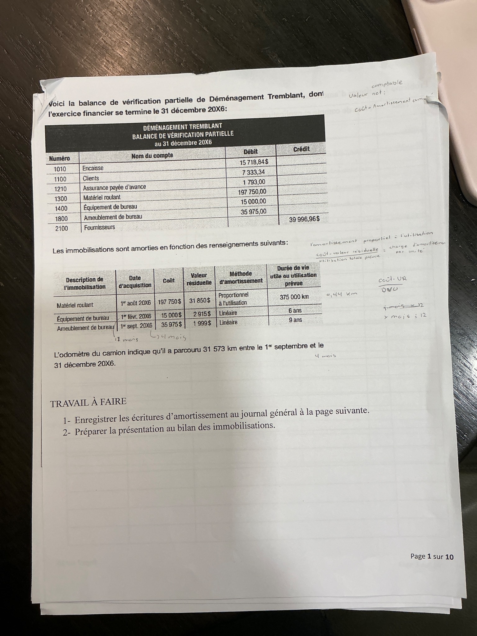 Postsecondaire • 1aCeci-ci sont deux exercices pour mon cour de comptabilité au cégep j’ai de la misère avec les écriture de régularisation pour l’amortissement