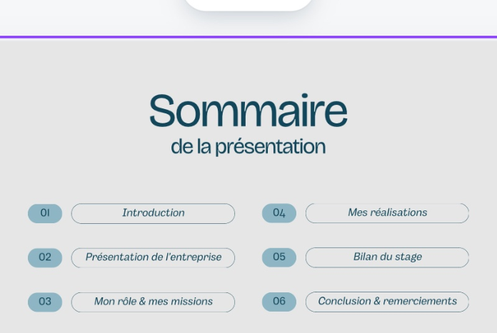 vous pouvez m’aider à traduire ça en espagnol (les mots en bleu) et me dire ce que je pourrais mettre pour chaque titre m’aider à trouver comment construire cette diapositive comment la présenter ect ….pour la présentation d’un stage