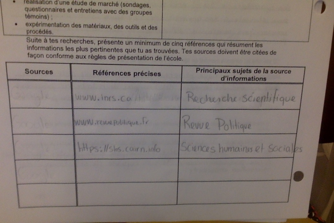 Secondaire 2 • 1mj'ai un design à faire puisque je suis au programme P.E.I mais j'ai besoin de savoir qu'est-ce qu'une source. En fait, je dois écrire des recherches primaires directes ou secondaire indirectes. Et écrire un exemple. Il doit y contenir : une source, une référence précise et le principal sujets de la source d'inspiration. Bref, je sais sa fait beaucoup, mais je voudrais savoir qu'est-ce qu'une source puisque je ne suis pas sûre de ce que j'ai écris.