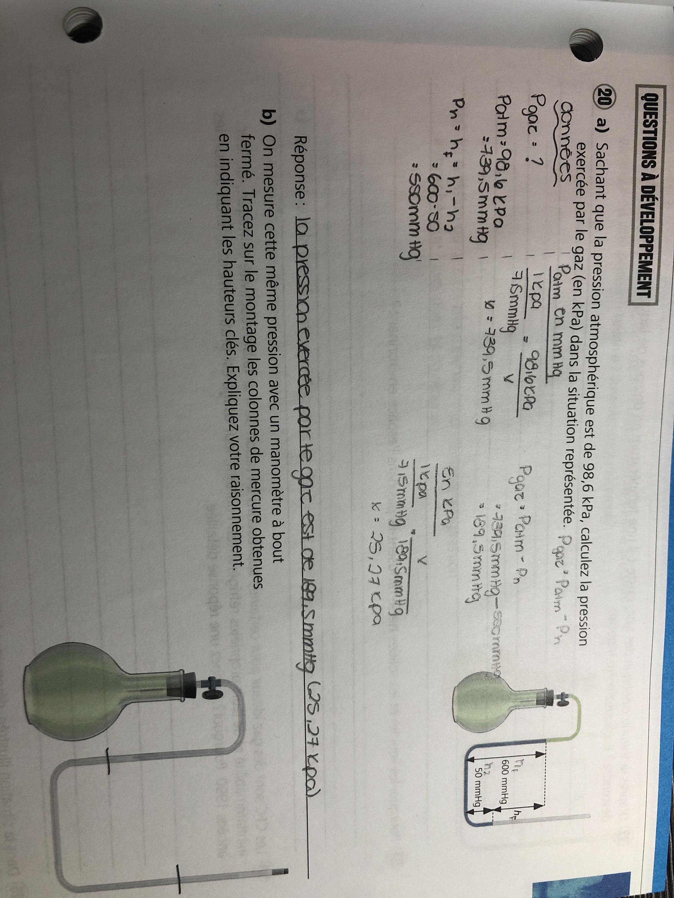 Secondaire 5 • 7jJe ne comprend pas les calculs à faire quand un manomètre et fermé et ouvert