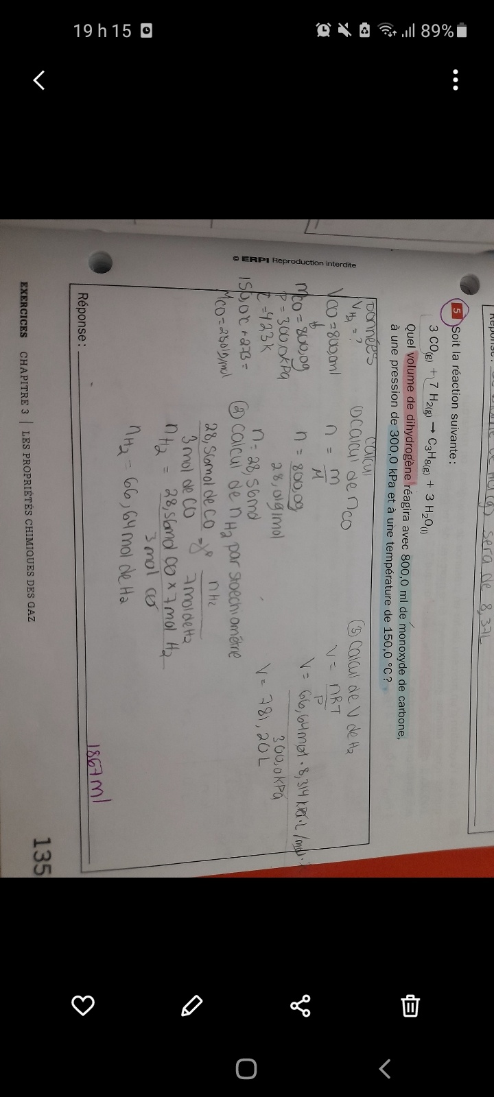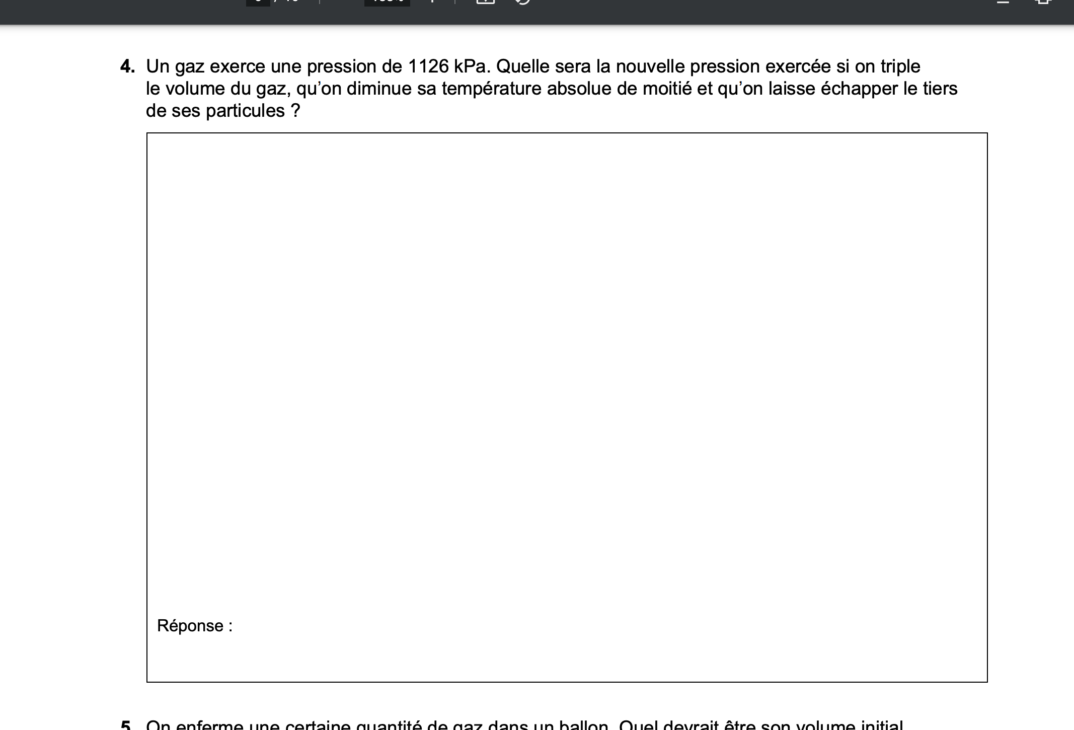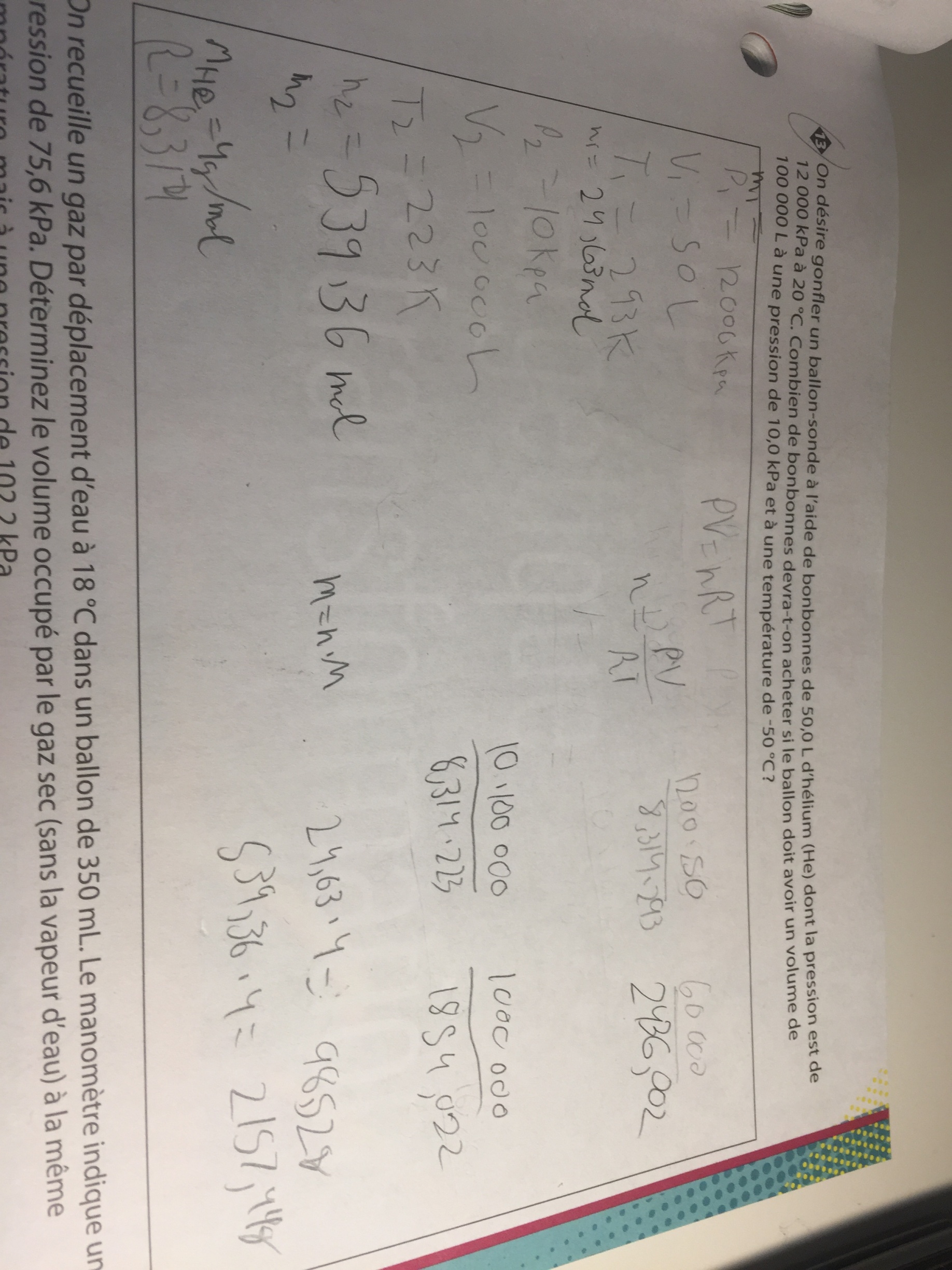 Secondaire 5 • 3aBonjour je me demandais comment trouver le nombre de mol contenu dans un certain volume de gaz a TPN