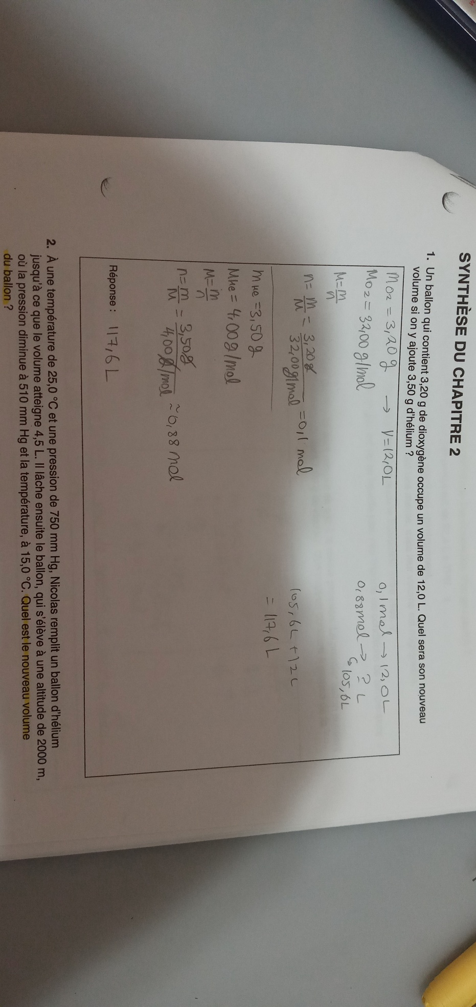 Secondaire 5 • 3aJ'ai un problème en chimie que j'ai de la difficulté à résoudre:
