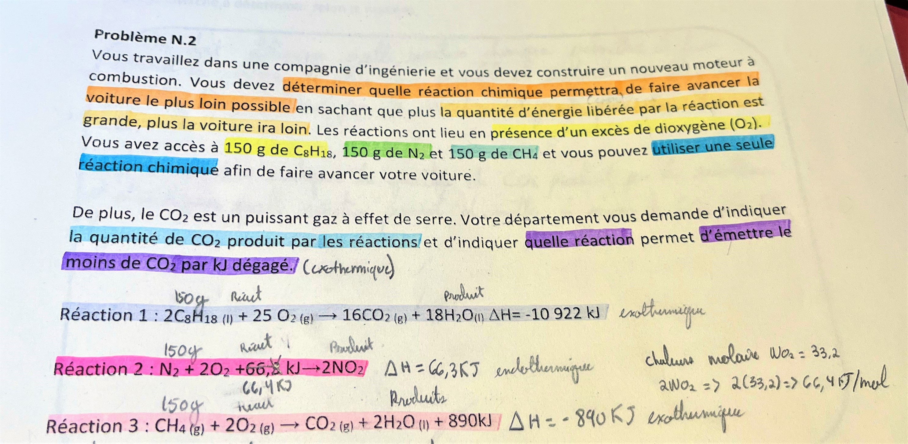 Secondaire 5 • 3aBonjour, J'ai déjà trouvé la quantité de réactifs et la chaleur dégagé de ceux-ci et les j'ai également trouvé la chaleur dégagée du CO2 mais je me demandais si je dois également calculer l'enthalpie du H2O pour la réaction 1 et 3 ?