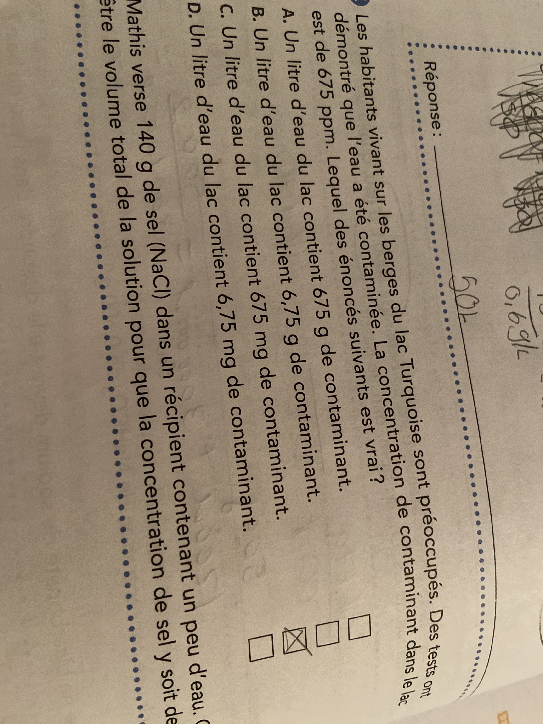 Secondaire 4 • 3aBonjour! Dans le numéro à choix de réponses je me demandais pourquoi c’est 675mg et non de grammes (675g) car je pensais que les ppm c’était g/1000000