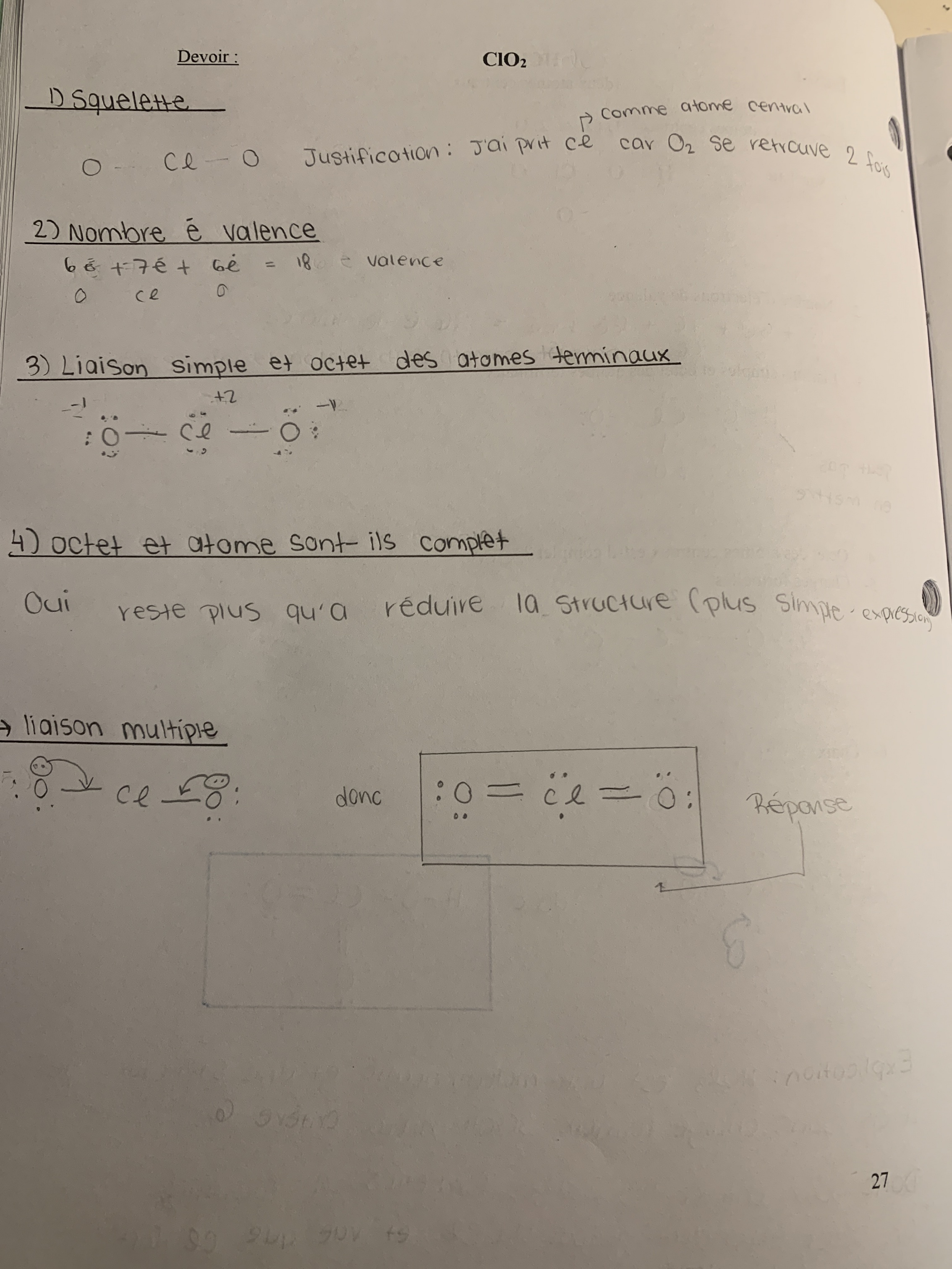 Secondaire 5 • 3aBonjour je ne suis pas exactement sûre de ma démarche au niveau de la structure de Lewis merci de m’éclairer surtout aux niveau des charge !