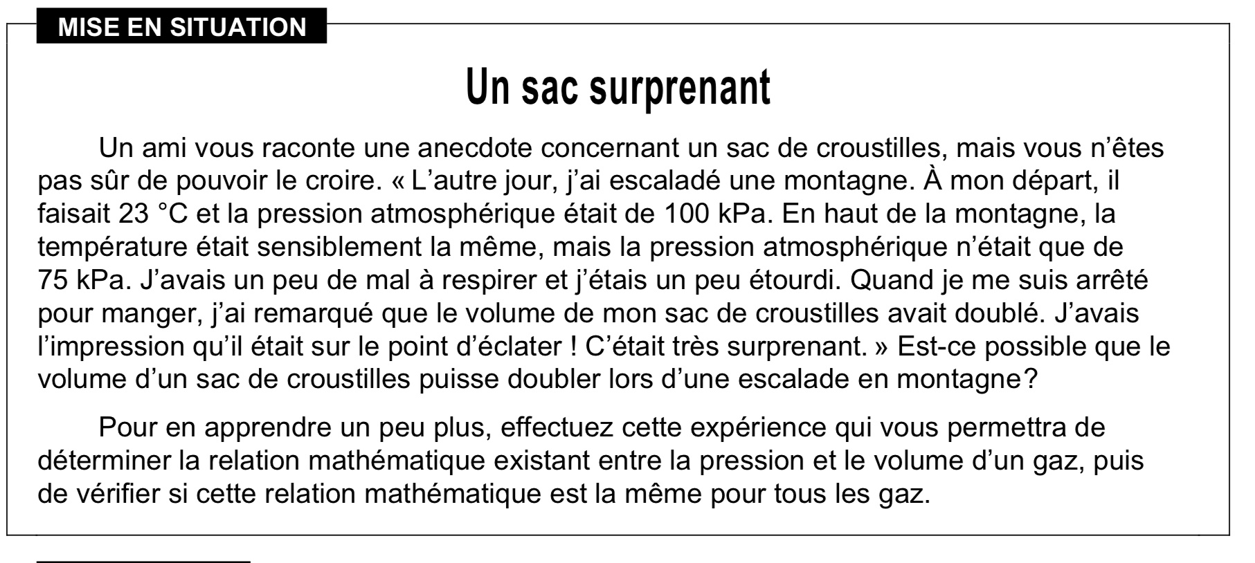 Est-ce possible que le volume dum sac de croustilles puisse doubler lors dune escalade en montagne? Expliquer votre réponse.