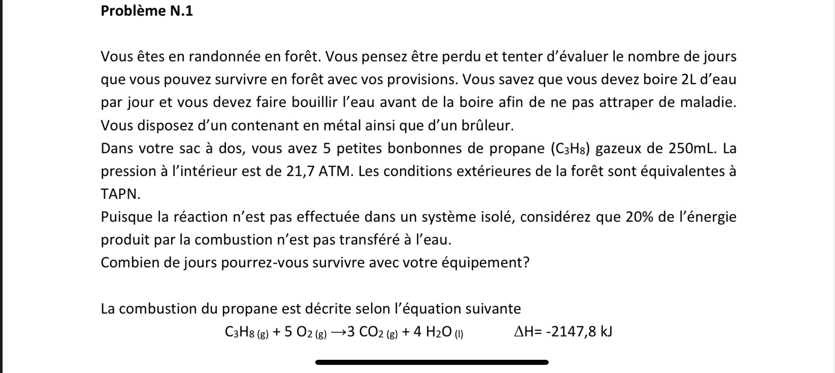 Secondaire 5 • 3aJe ne sais pas si je dois trouver la chaleur massique ou l'énergie dégagée de chaque réaction sachant que comme il est préciser un peu plus haut que les réactions ont lieu en présence d'un excès de dioxygène. De plus, je ne sais pas si je doit faire le bilan énergétique en trouvant l'enthalpie des produits et des réactifs. Merci de bien vouloir m'enligner afin de résoudre ce problème.