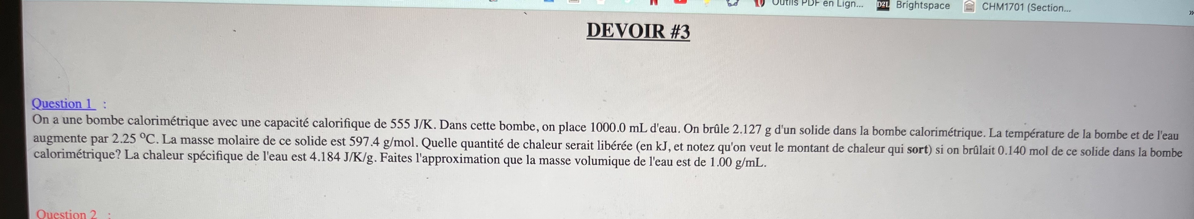 Secondaire 5 • 3aJe ne sais pas comment trouver la quantité de chaleur libérée.