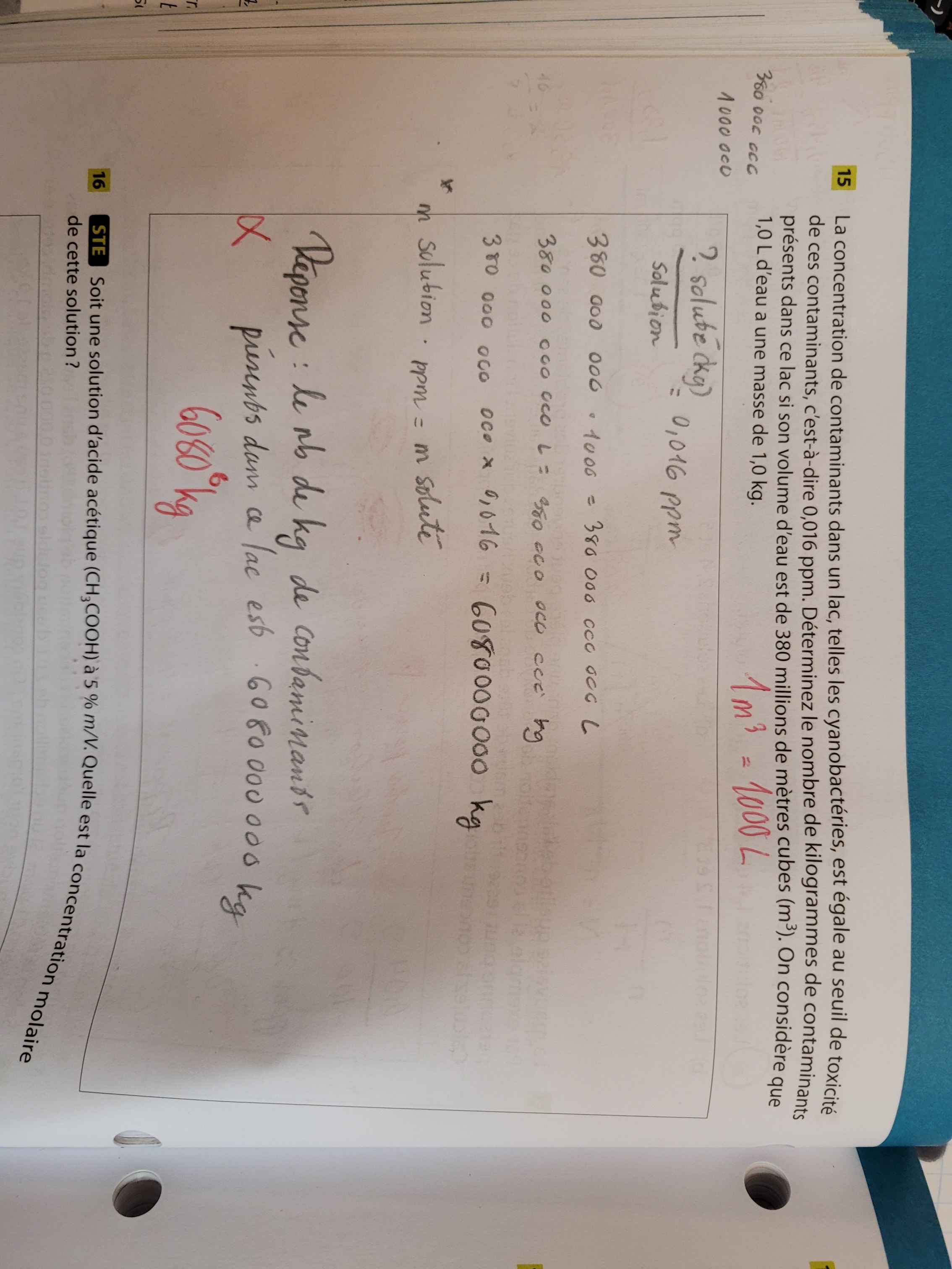 Secondaire 4 • 3aBonsoir AllôProf! Je me demandais si ma réponse dans cette question par rapport au ppm était bonne. Désolé de vous faire faire des calculs ainsi que pour la photo verticale. Merci beaucoup d'avance et bonne soirée :)