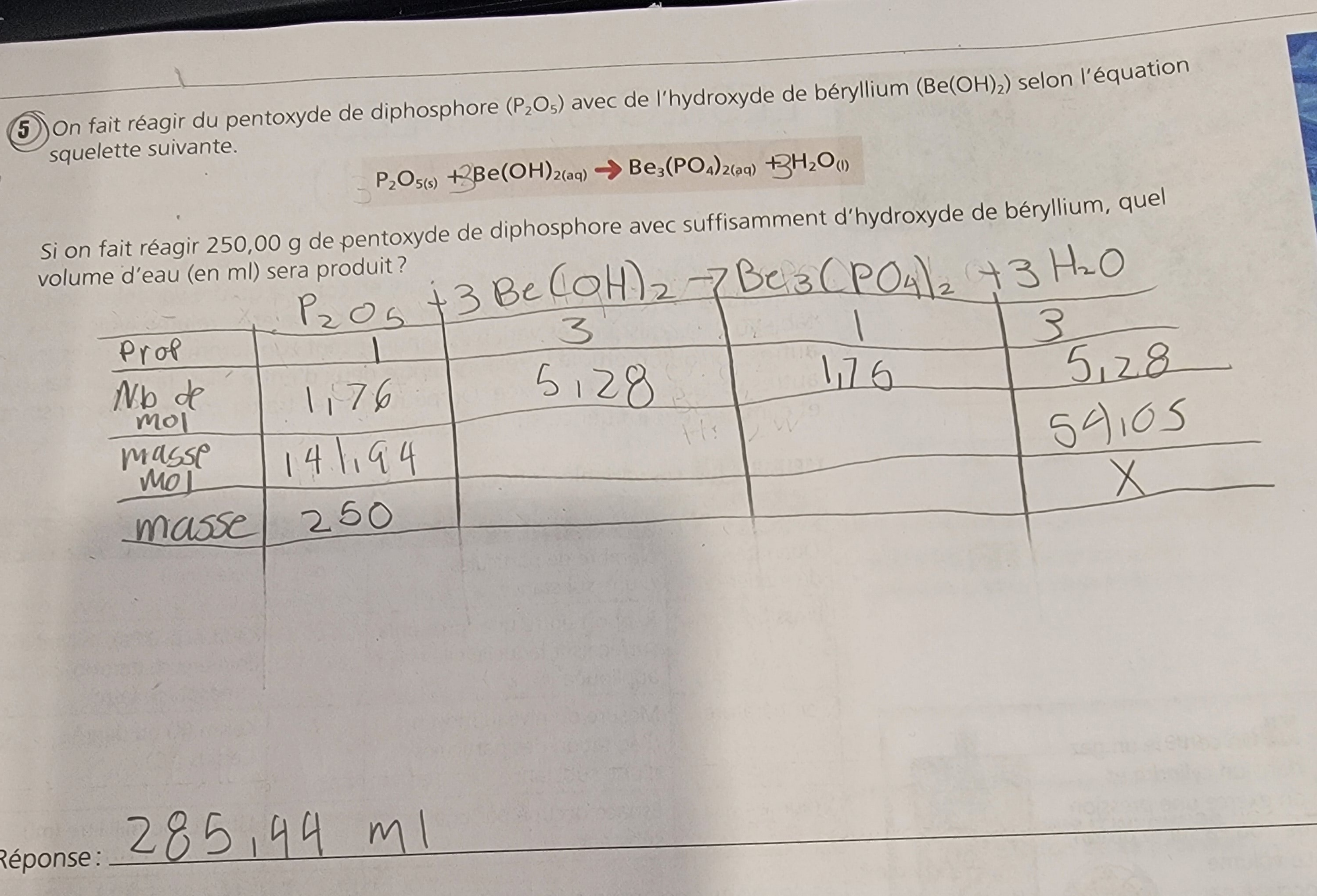 Secondaire 5 • 3aQuelle est le nombre de triacetate d'aluminium si on a une masse de 28g de cette substance ?