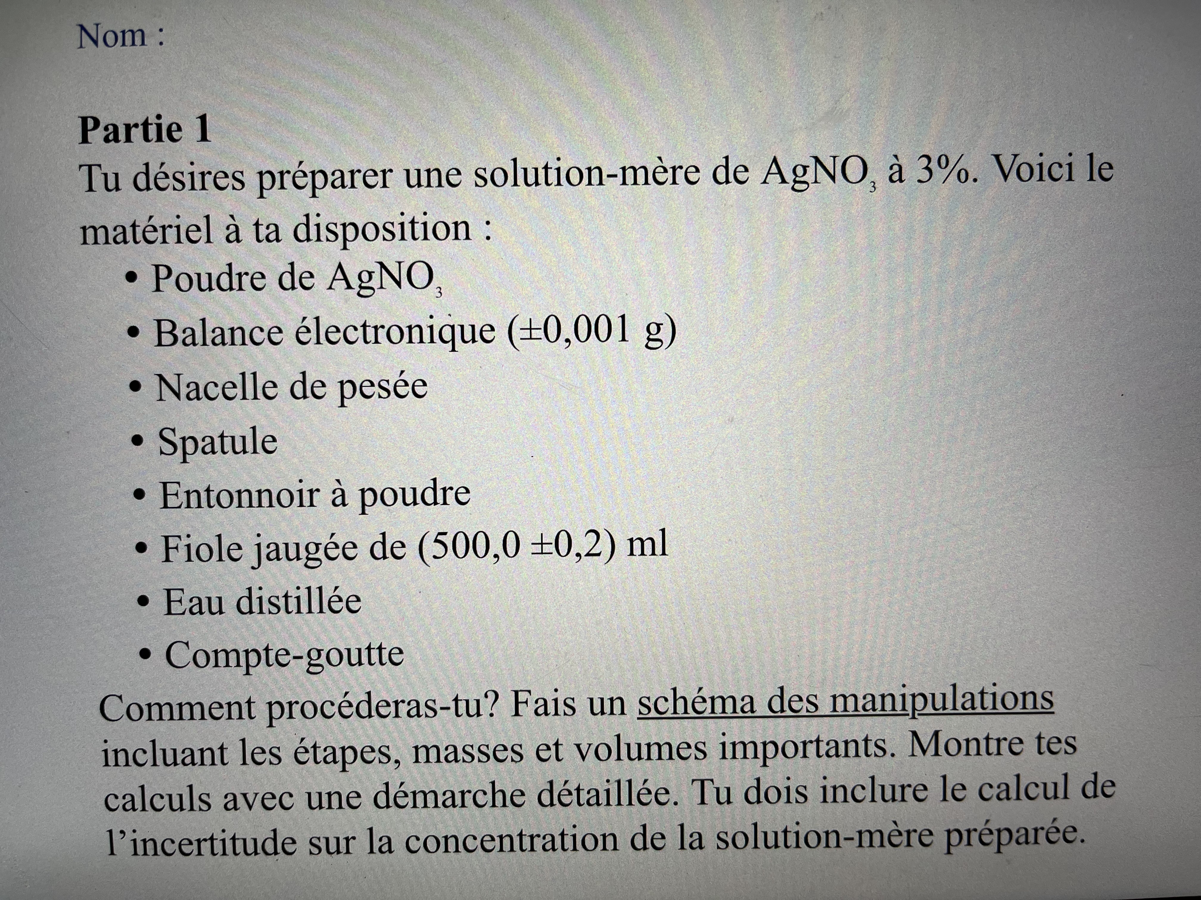P.S. pour matériel, j’ai accès à 1 ballon jaugé vide de 100 mL, 2 cylindres gradués de 10 mL et 2 cylindres gradués de 25 mL.