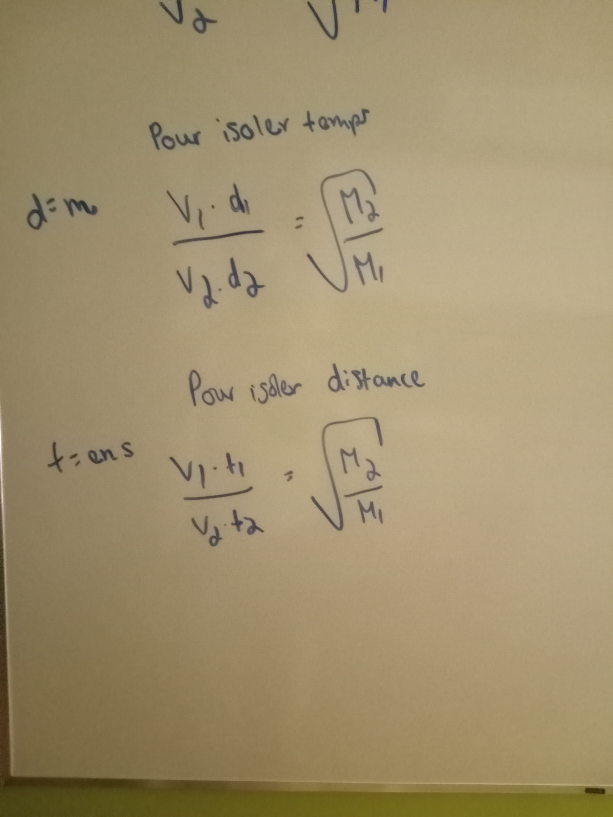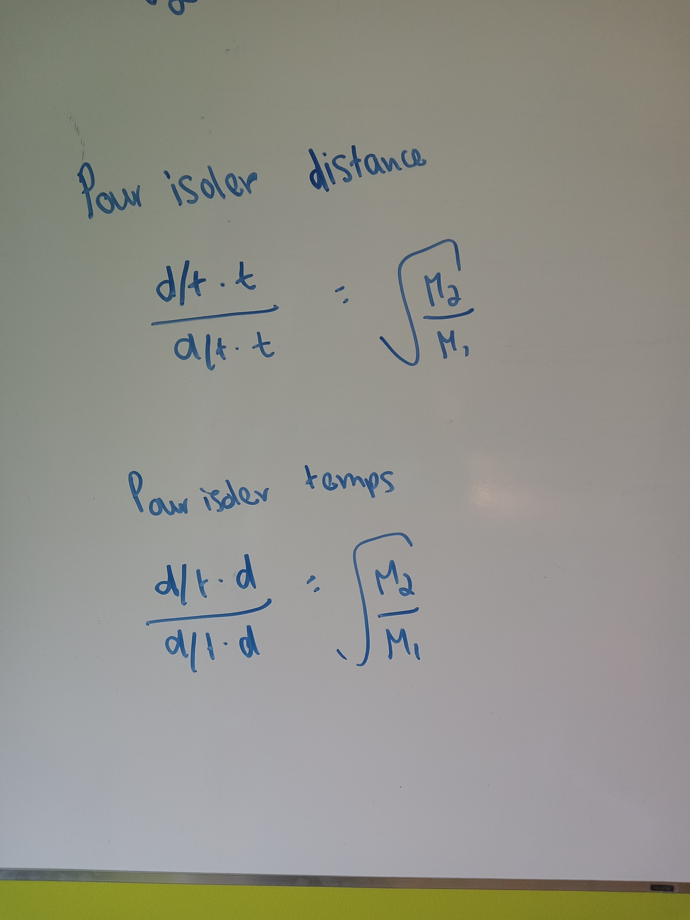 Secondaire 5 • 3aBonjour, je me demandais s'il s'agit des bonnes formules pour établir un lien entre le temps et la masse molaire et la distance et la masse molaire.