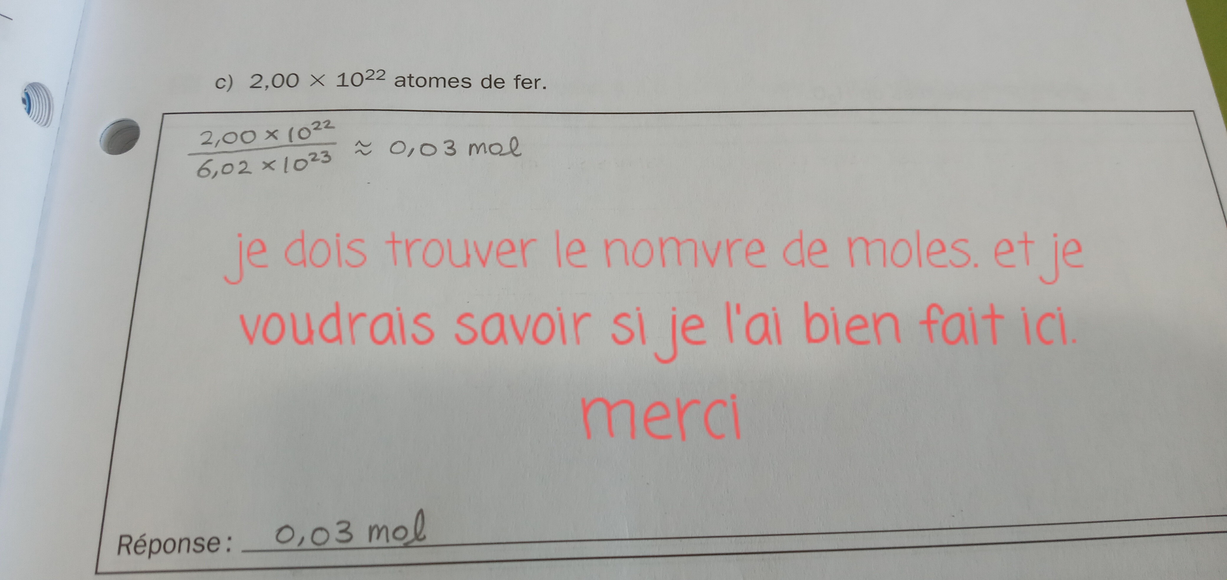 Secondaire 5 • 3aj'ai fait de calculs, mais je ne sais pas si je les ai bien faits. merci