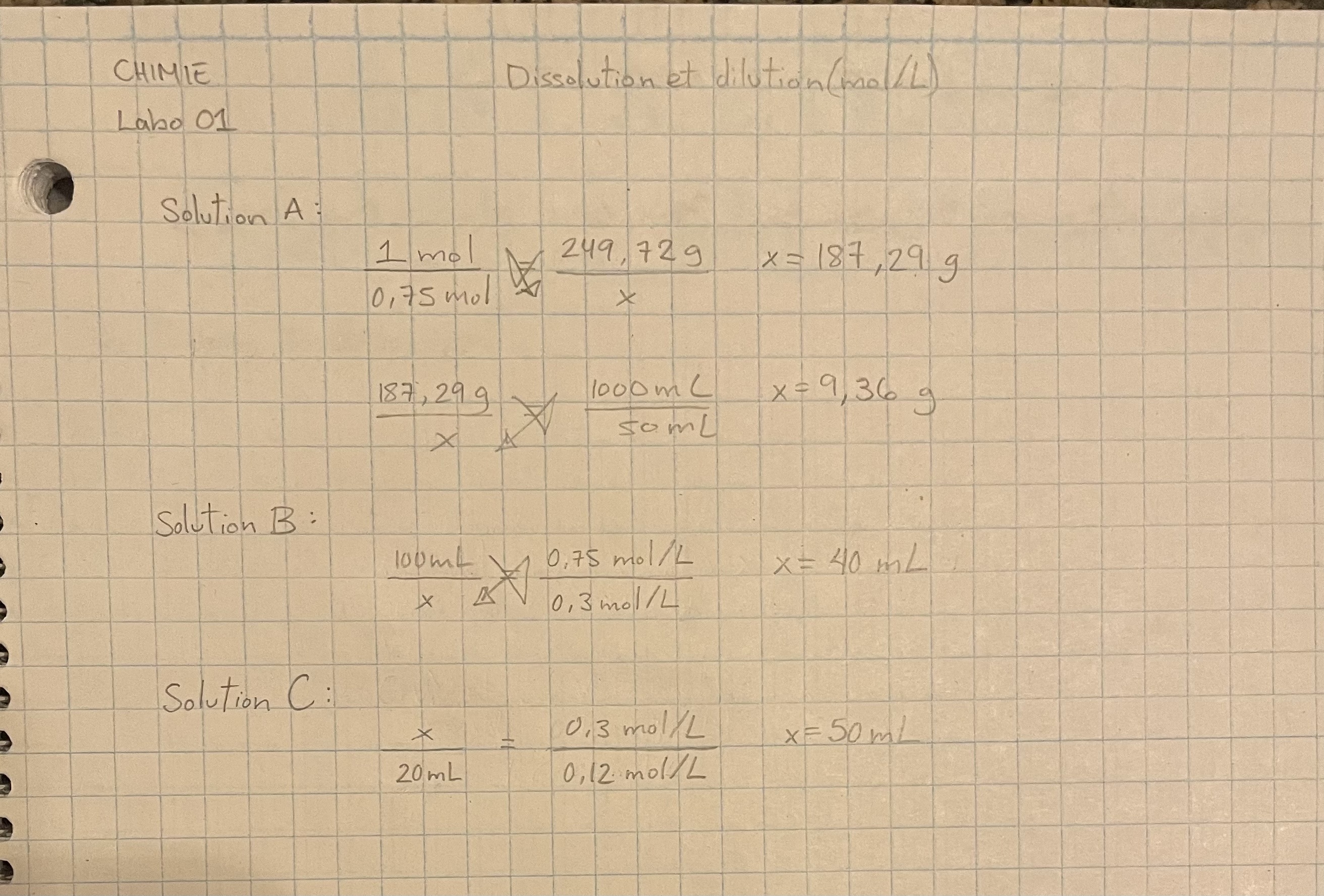 Pour la solution C: 50 mL