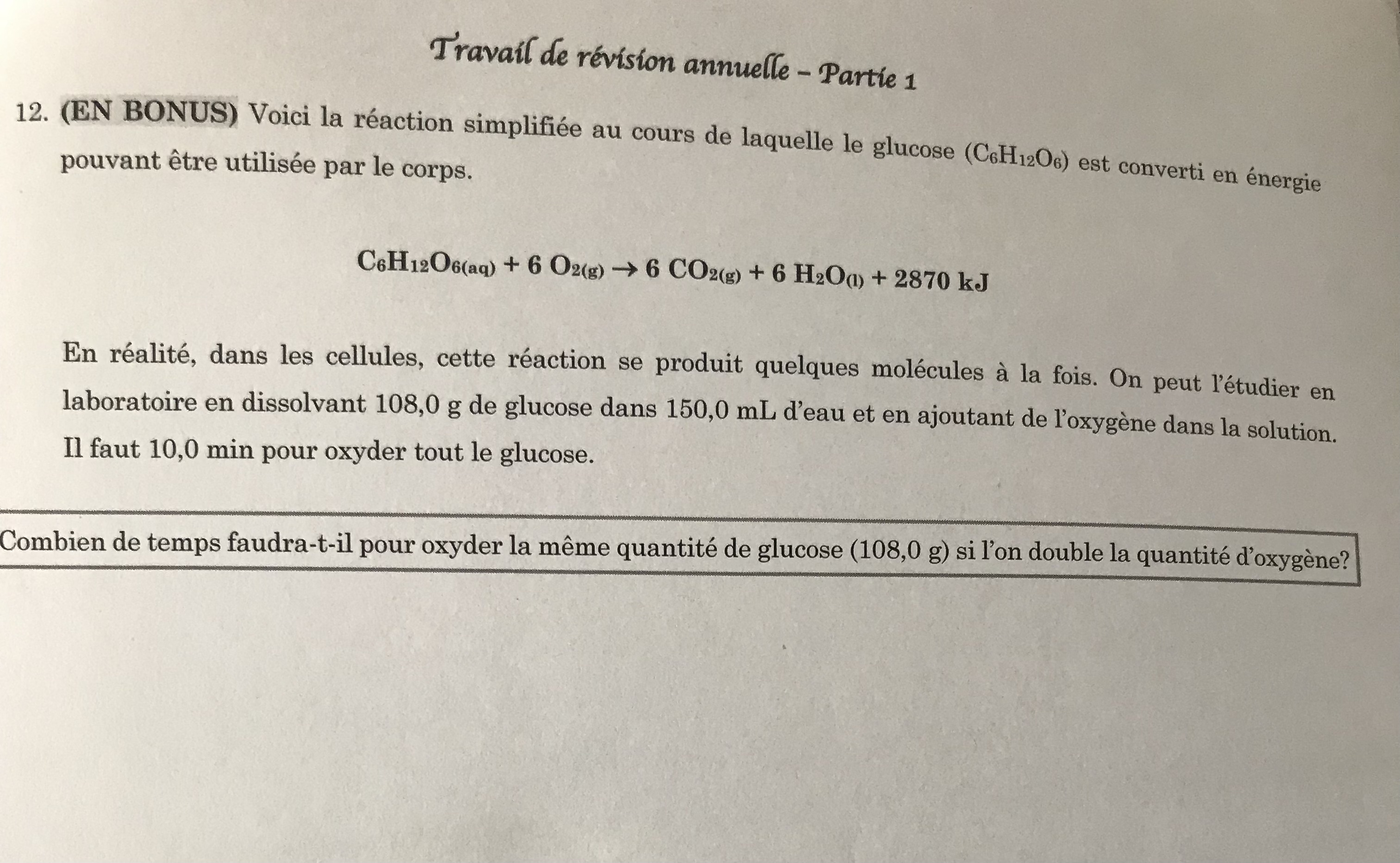 Secondaire 5 • 3aBonjour! Pouvez-vous m'aider avec ce numéro de chimie svp?