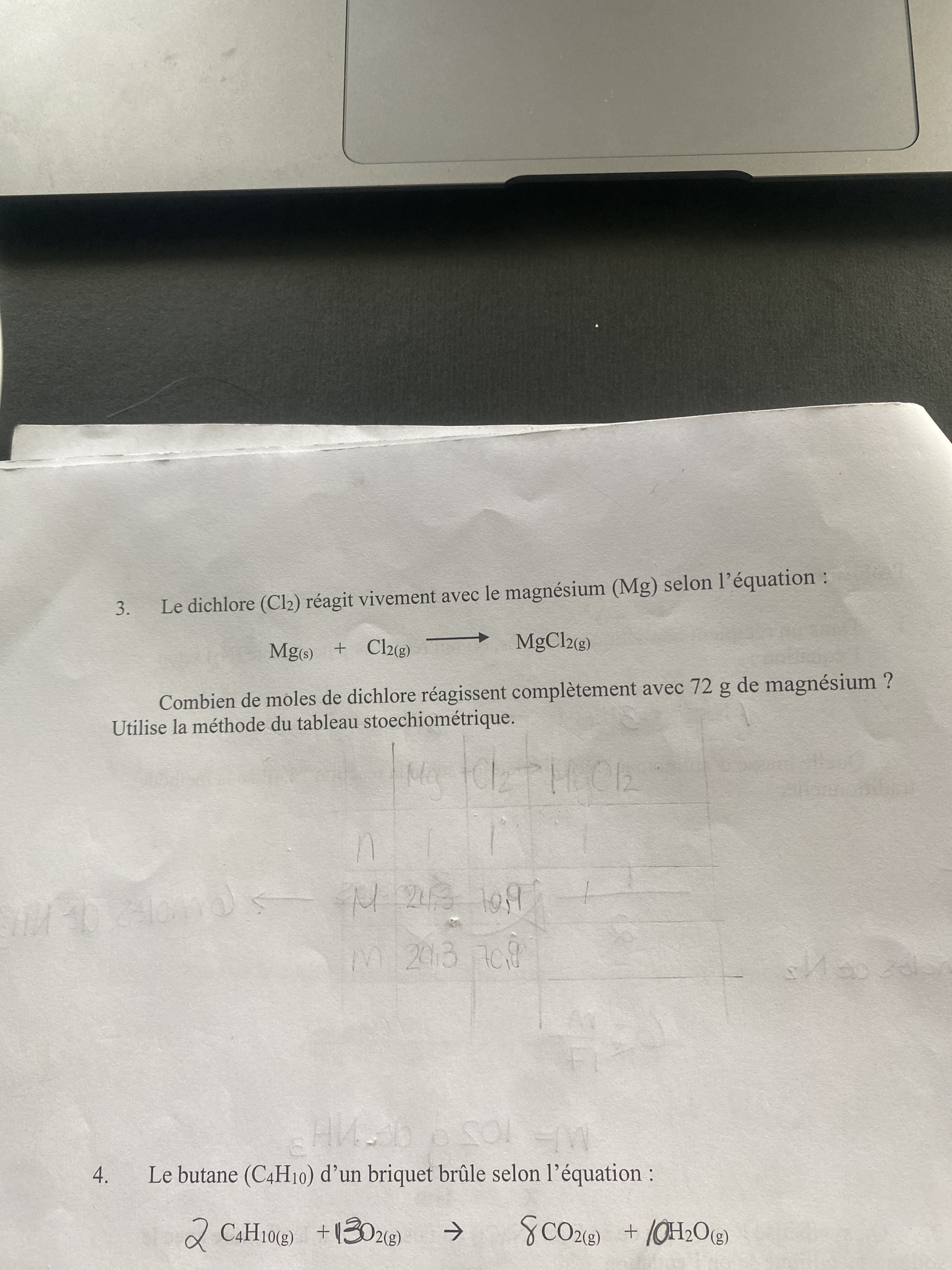 Secondaire 4 • 3abonjour!! je révise mes notions STE en ce moment et je dois faire la méthode du tableau stœchiométrique, mais je n’ai toujours pas compris comment faire cette méthode !! (mon équation est déjà balancer)