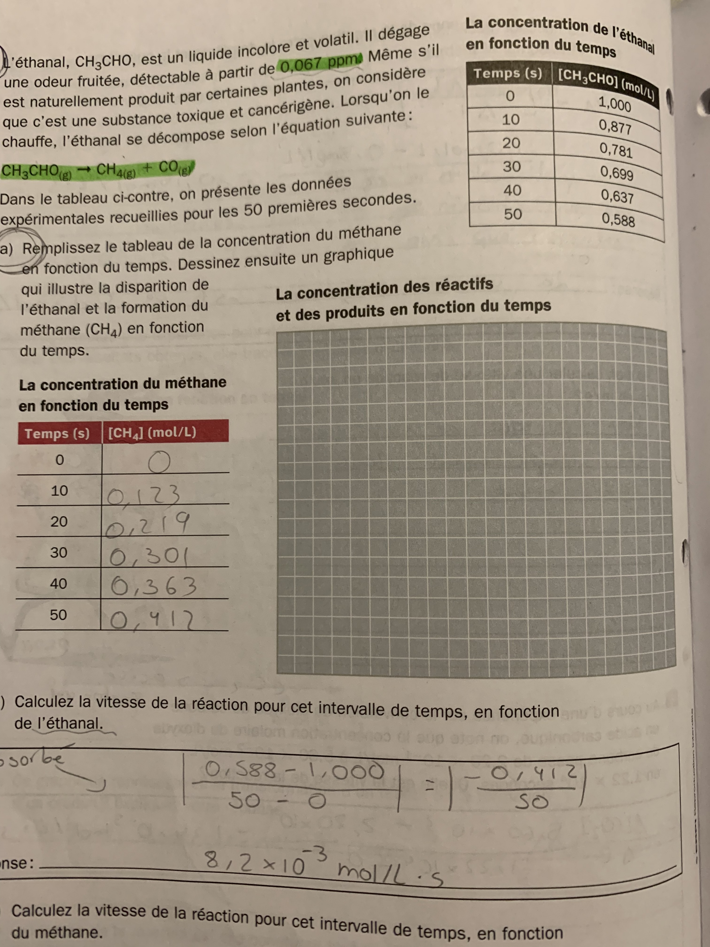 a cette question je ne comprends pas tropcomment trouver ma constante sachant que la vitesse de reaction change ??? la réaction est d'ordre 1, mais je prends laquelle des concentrations pour trouver ma constante puisque comme elles sont différentes, elles vont influencer la vitesse ?