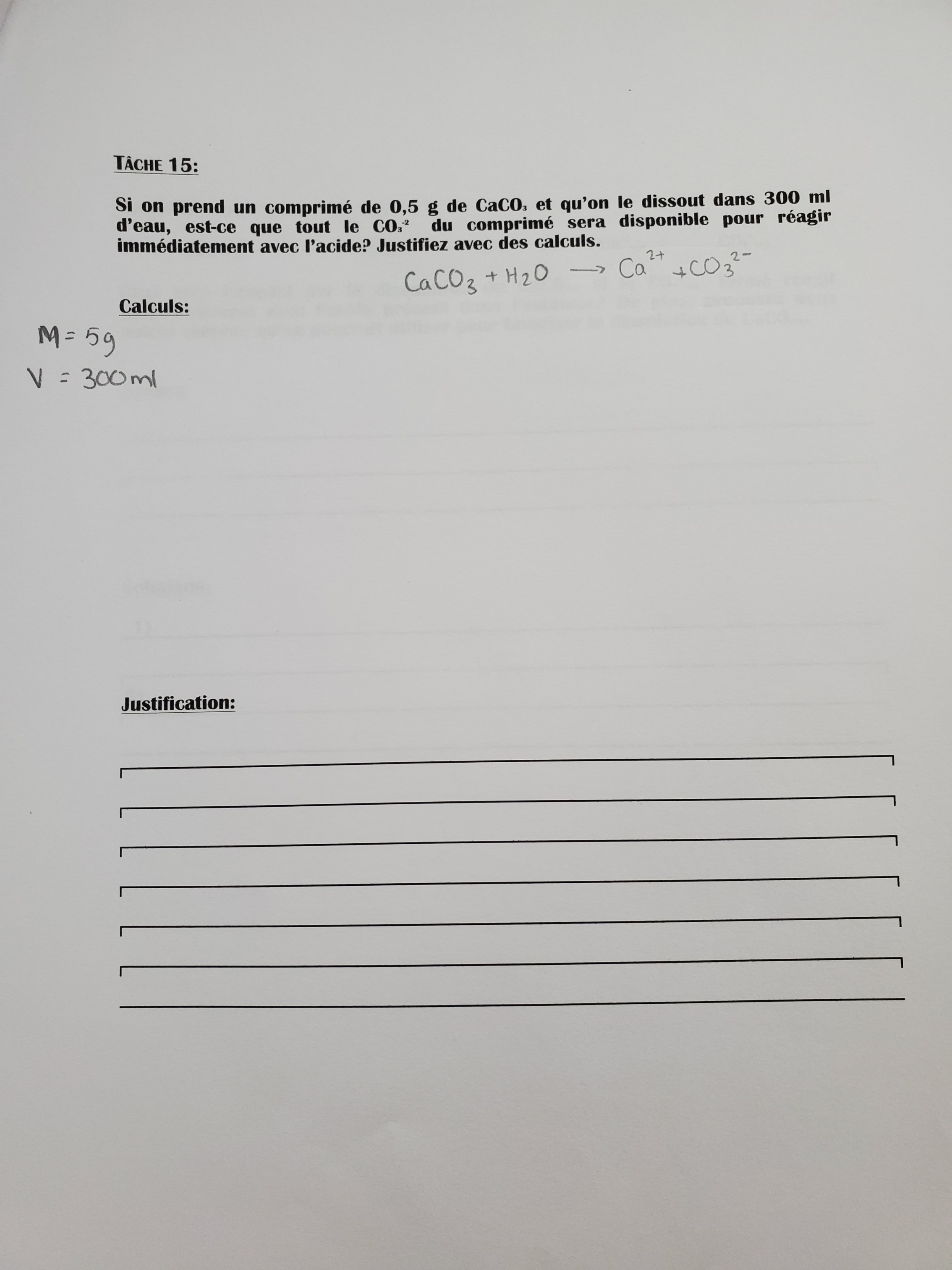 Pour la tâche 15, je ne sais pas non plus comment calculer si le CO3 va déjà être disponible.