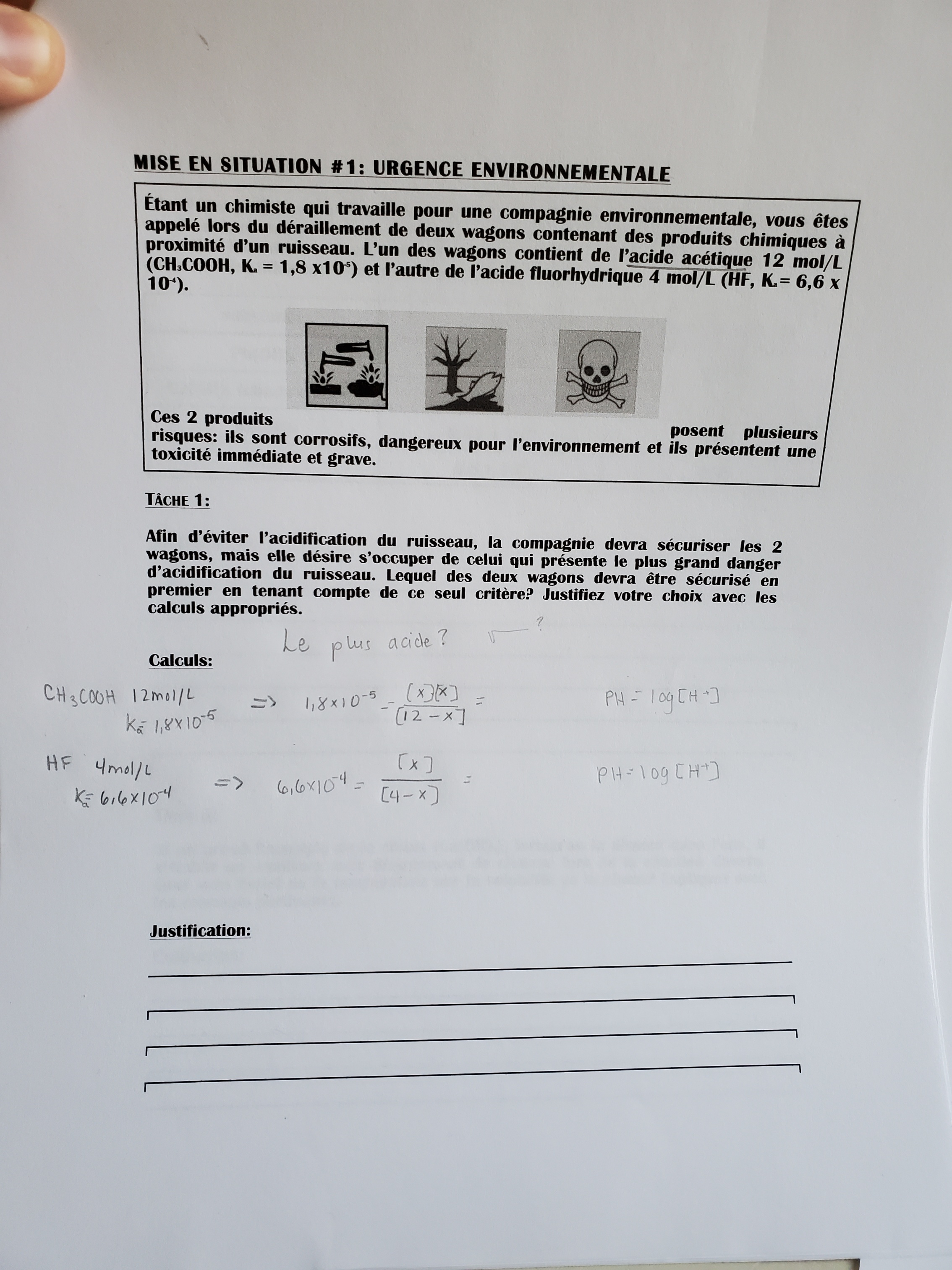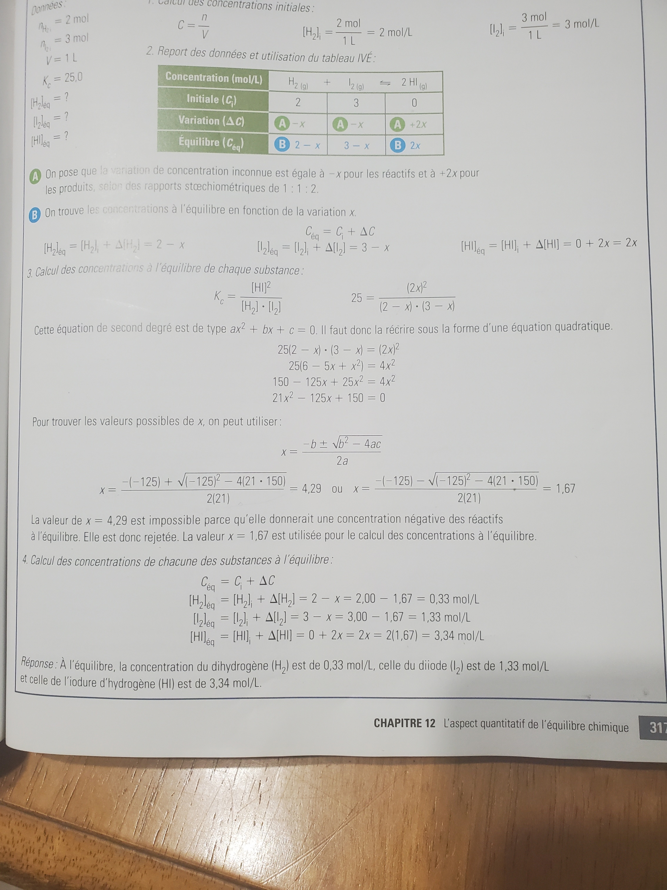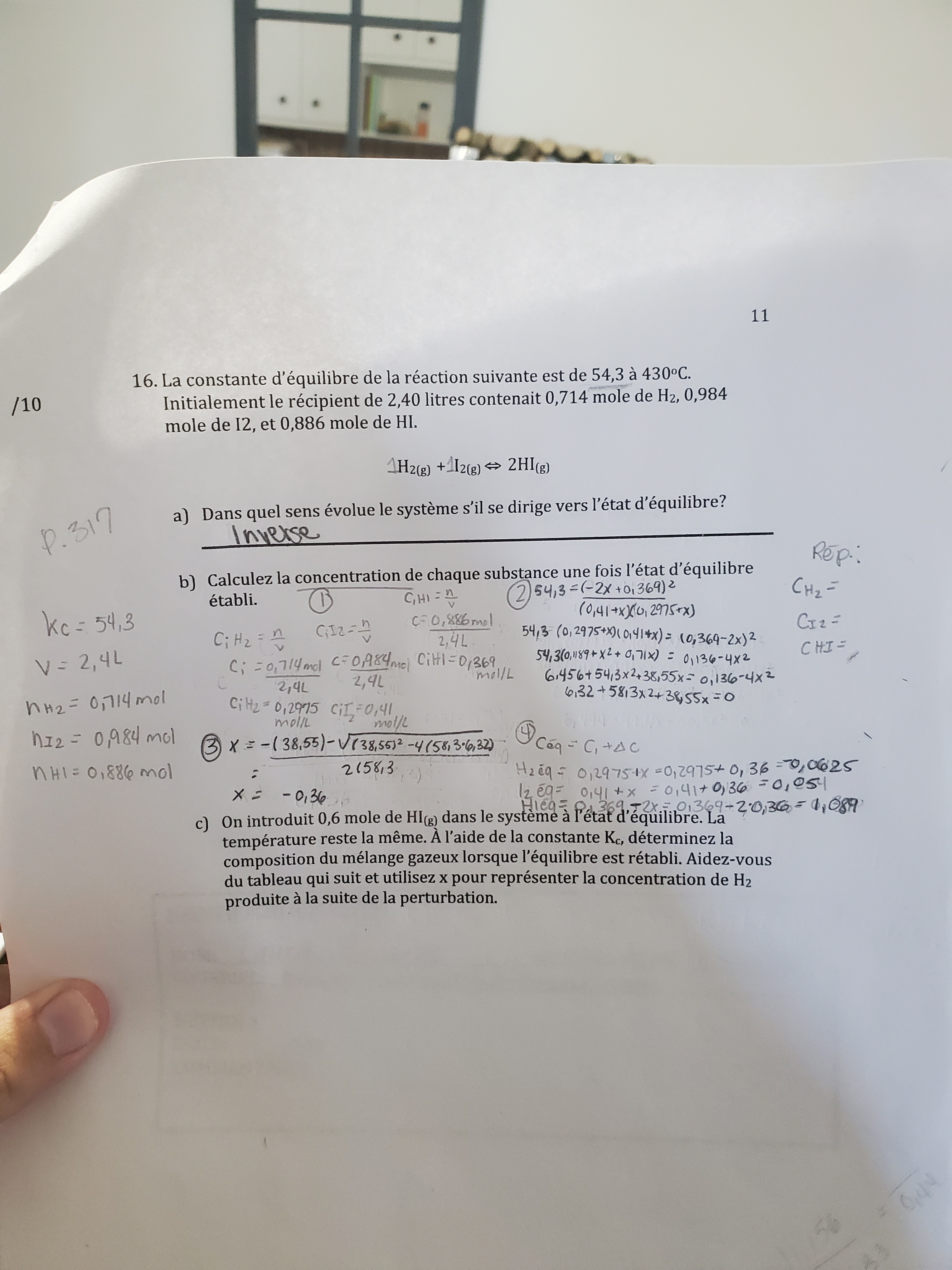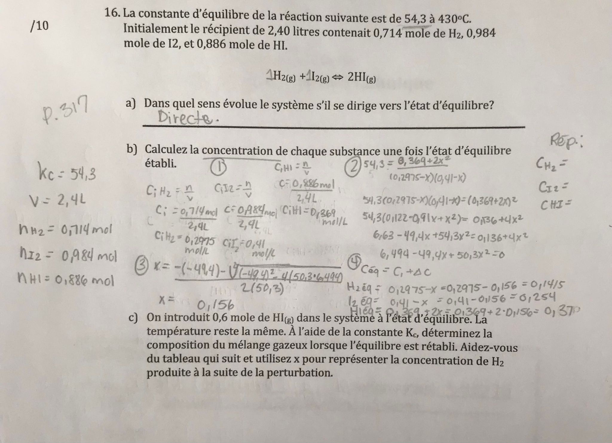 Secondaire 5 • 3aBonjour, j'ai ce numéro de constante d'équilibre. Les réponses me semble pas bonne, est-ce que j'ai fais la bonne méthode de calcul ?