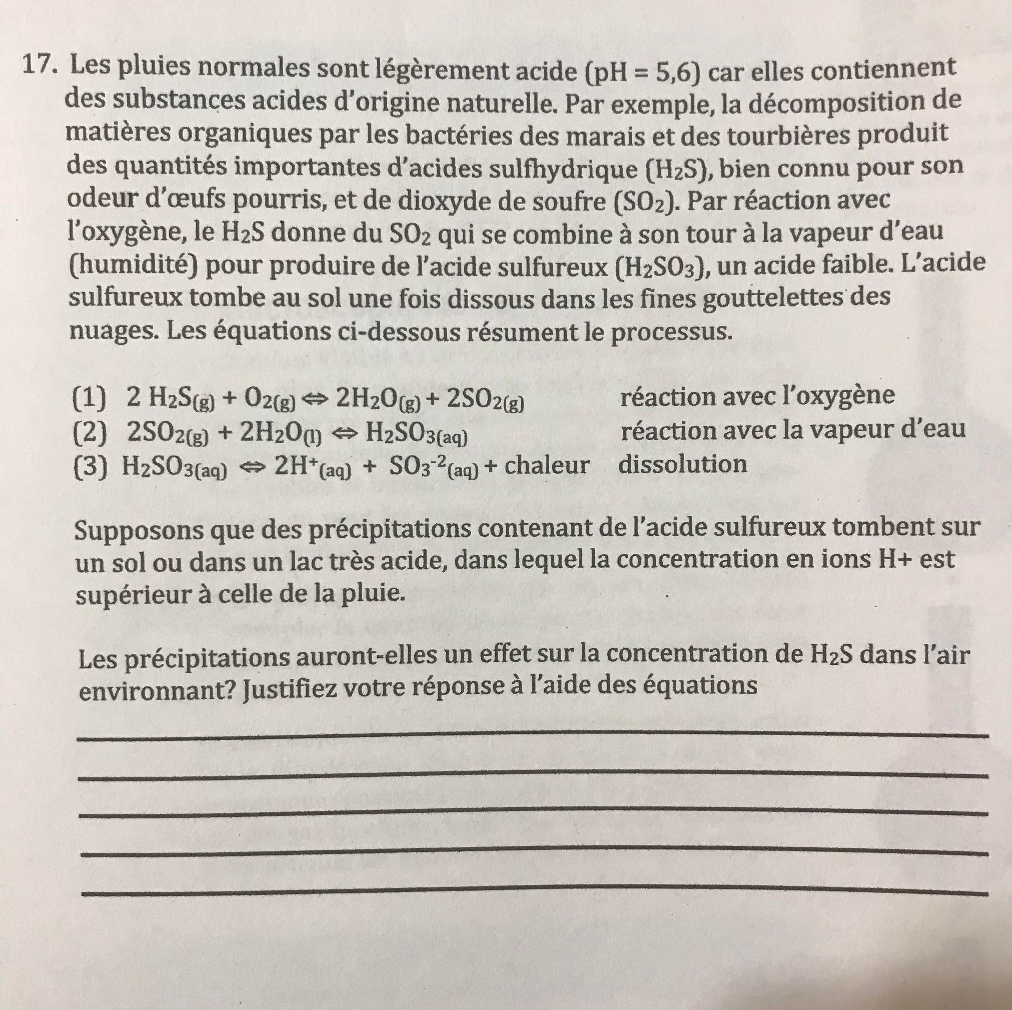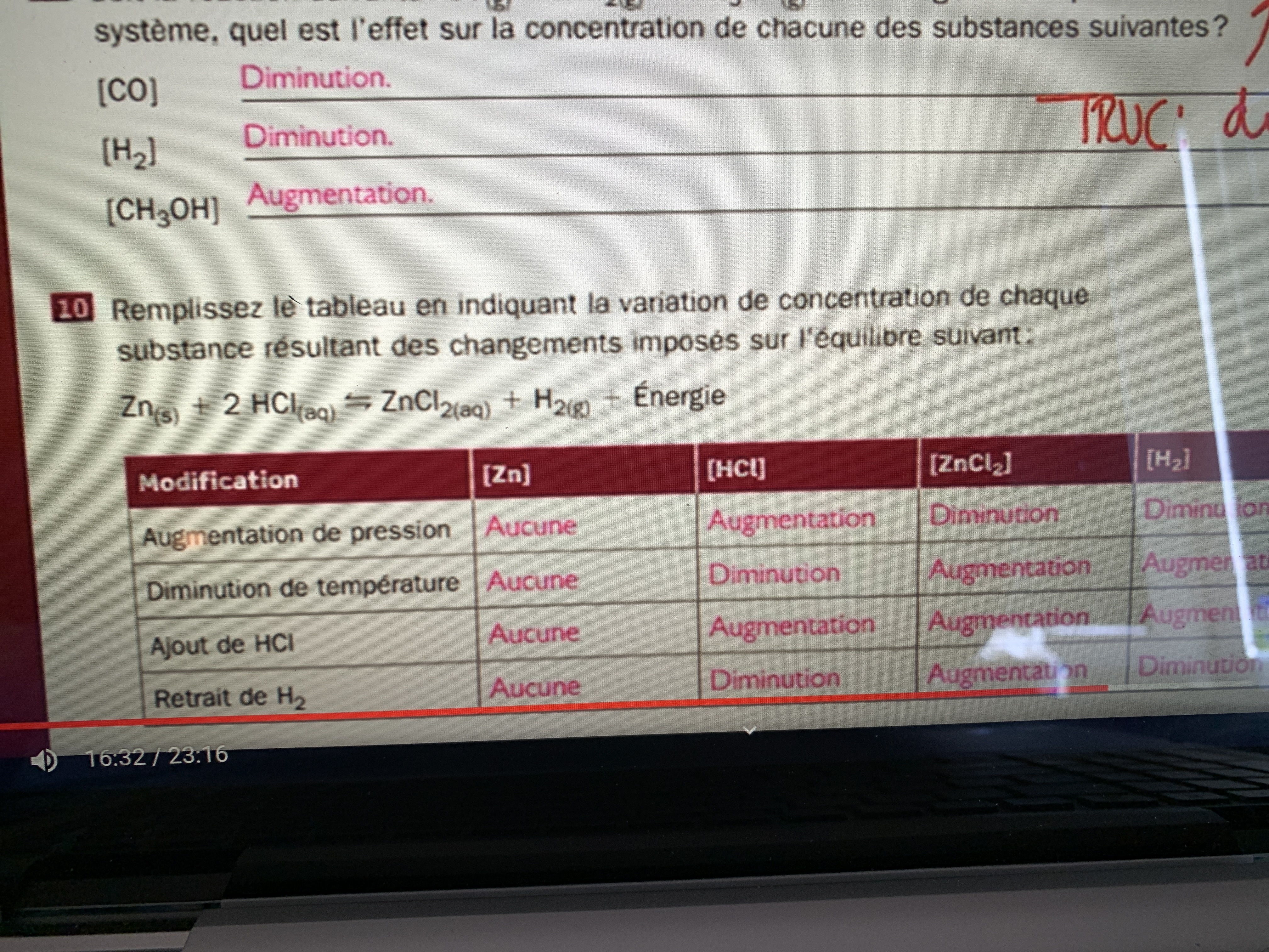 Secondaire 5 • 3aPourquoi l’augmentation de la pression fait augmenter la concentration de HCL (aq) , alors qu’un numéro indique que si un état n’est pas gazeuse, il n’y a aucun changement ?