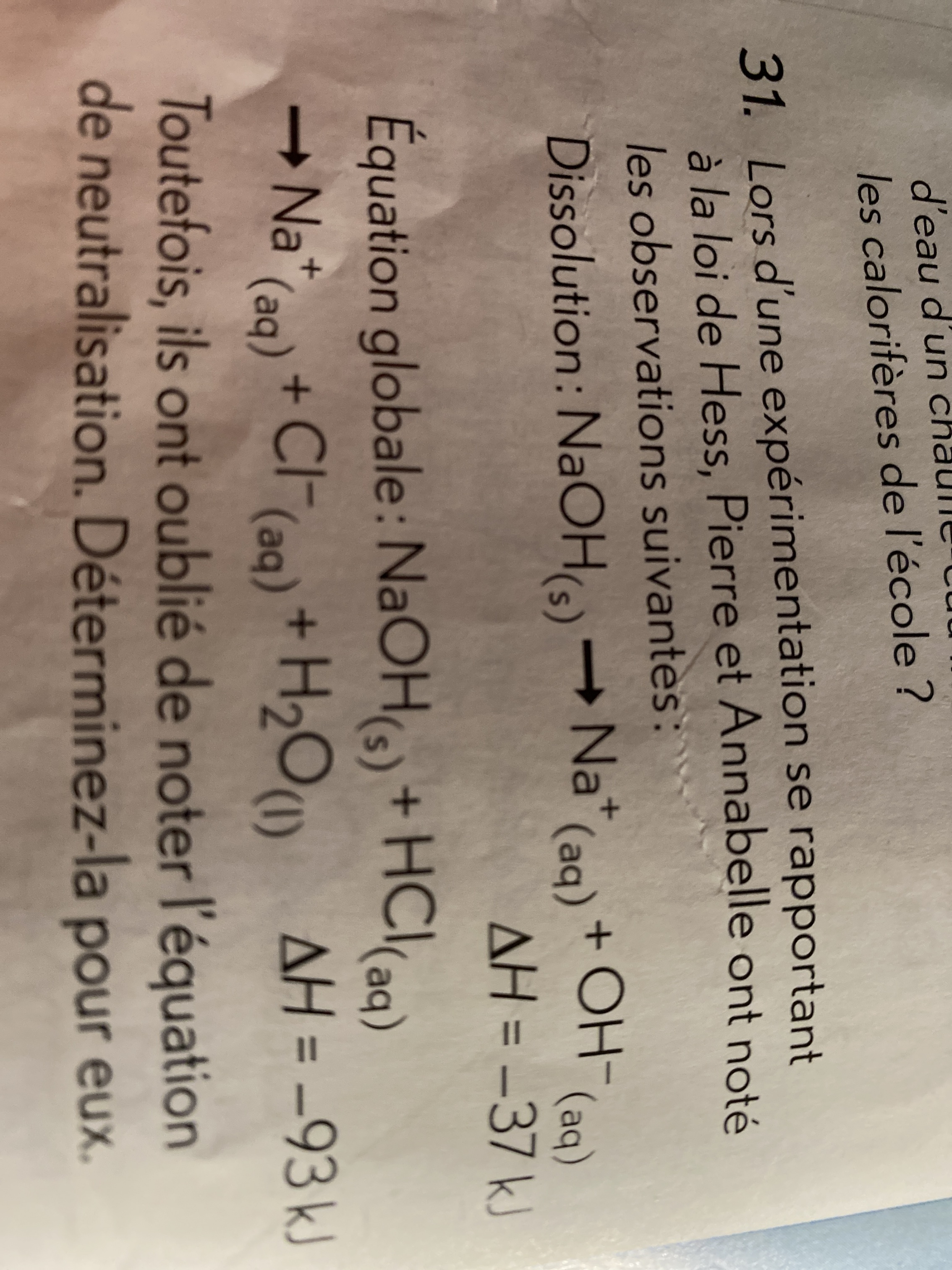 Secondaire 5 • 3aLors d’une expérience de calorimétrie, on observe que 50 ml d’un liqueur inconnu absorbé 3626J lorsque la température passe de 20.0°C a 55.0°C.
