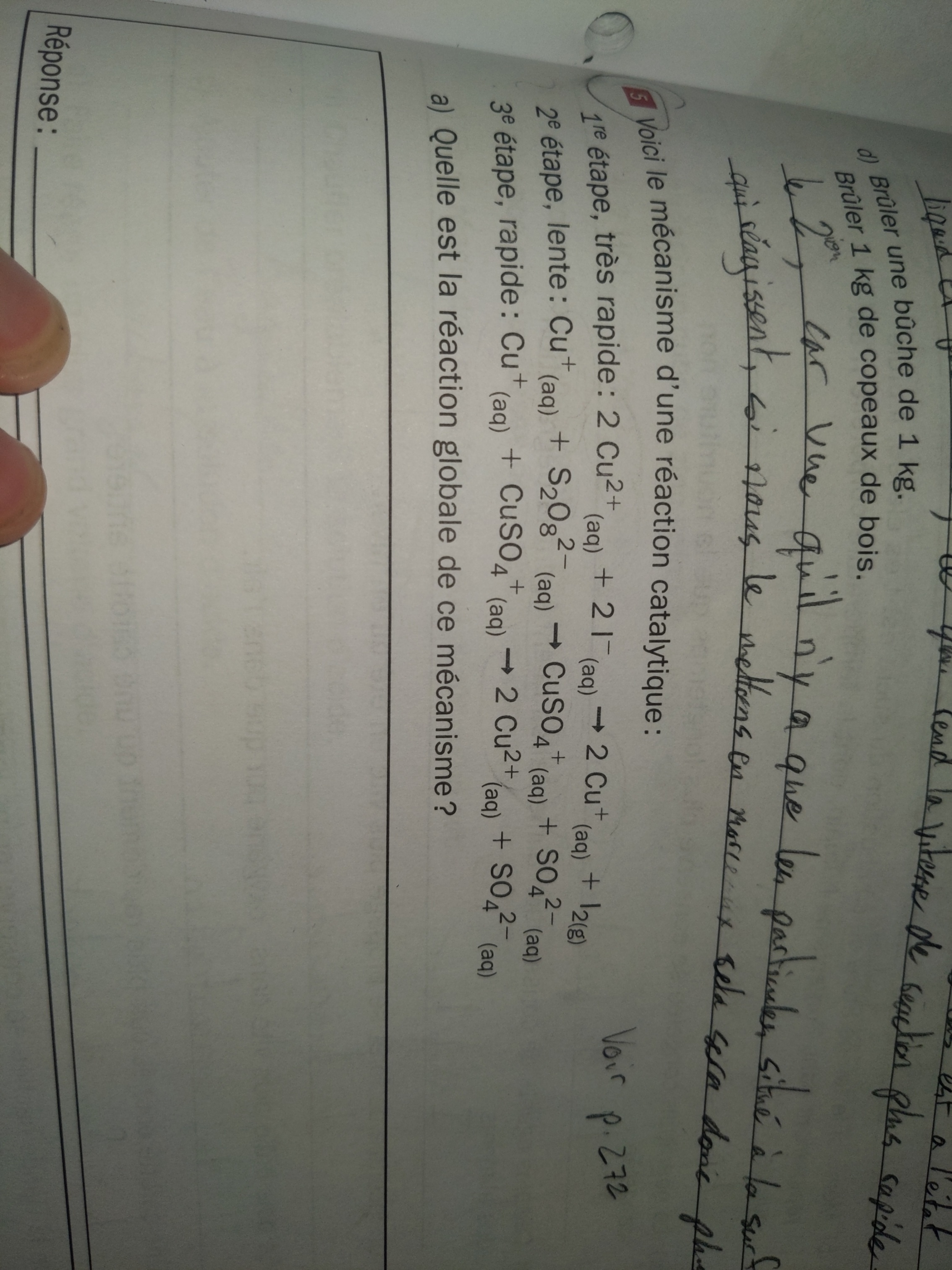 Secondaire 5 • 3aSi quelqu'un pourrait m'aider sur ce sujet il serait vraiment apprécié. Il s'agit d'une question sur le mécanisme d'une réaction catalytique et je n'arrive pas à savoir comment peut-on trouver la réaction globale de la réaction et comment trouver le catalyseur.