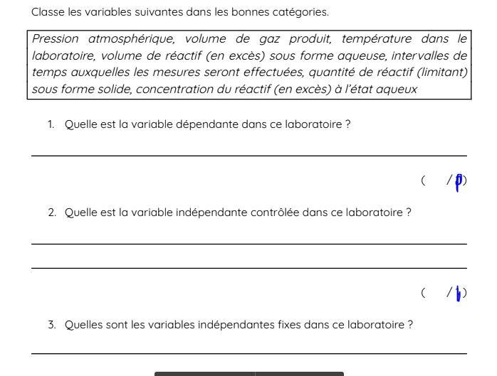 Secondaire 5 • 3aJe ne comprend pas c'est quoi une variable dépendante, indépendante controlée et fixes dans ce laboratoire.