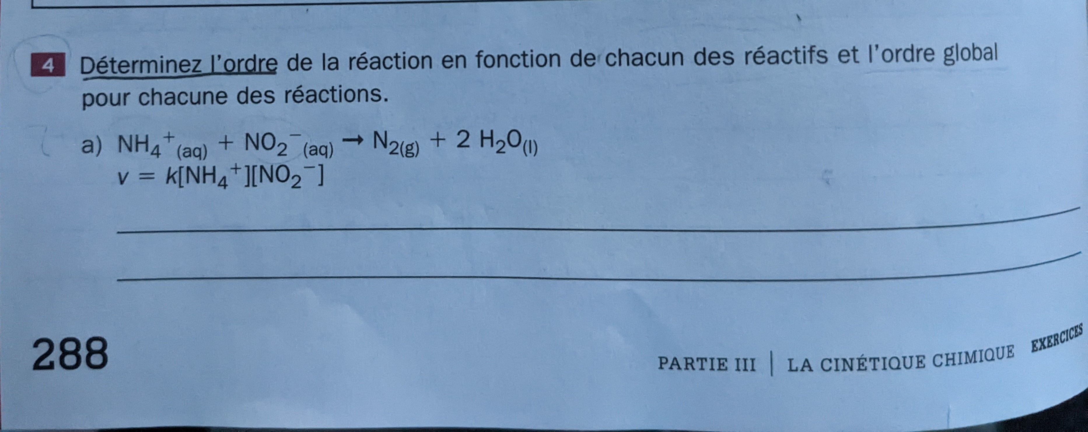 Secondaire 5 • 3aBonjour, j'aurais une petite question en ce qui concerne la chimie. Je me demandais comment trouver l'ordre de la réaction ainsi que trouver l'ordre globale dans ce cas-là.