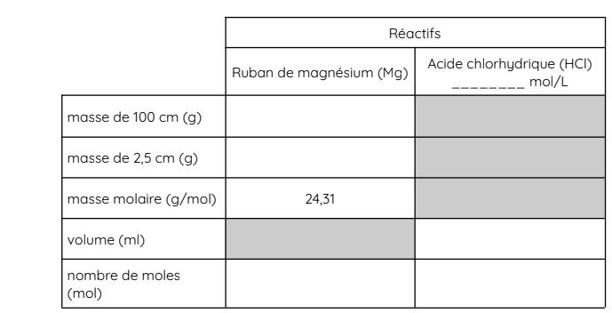 Secondaire 5 • 3aEst-ce qu'on peut passer de cm en g ?Je ne comprends pas quoi mettre dans ce tableau ?