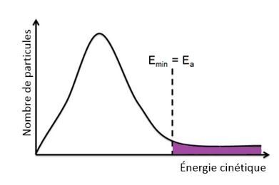 Secondaire 5 • 3aC’est quoi l’aire complète sous la courbe? Je sais que le morceau en mauve c’est toutes les particules qui ont assez d’énergie cinétique pour faire des collisions efficaces mais je ne suis pas sûr pour le total (partie blanche + partie mauve) Est-ce le nombre de particules au total ou la quantité d’énergie cinétique au total?
