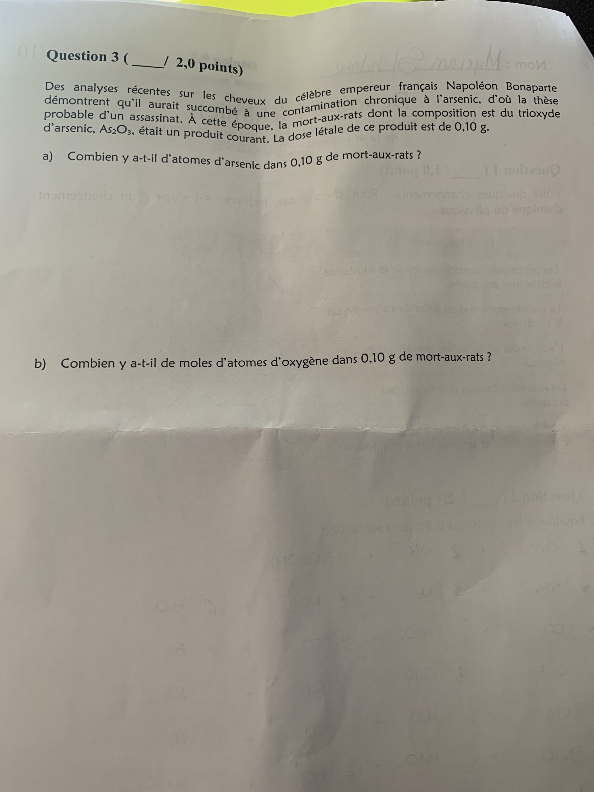 Secondaire 5 • 3abonjour, comment peut on déterminer le nombre de mole d'un atome dans un composé chimique d'ont on a la masse?